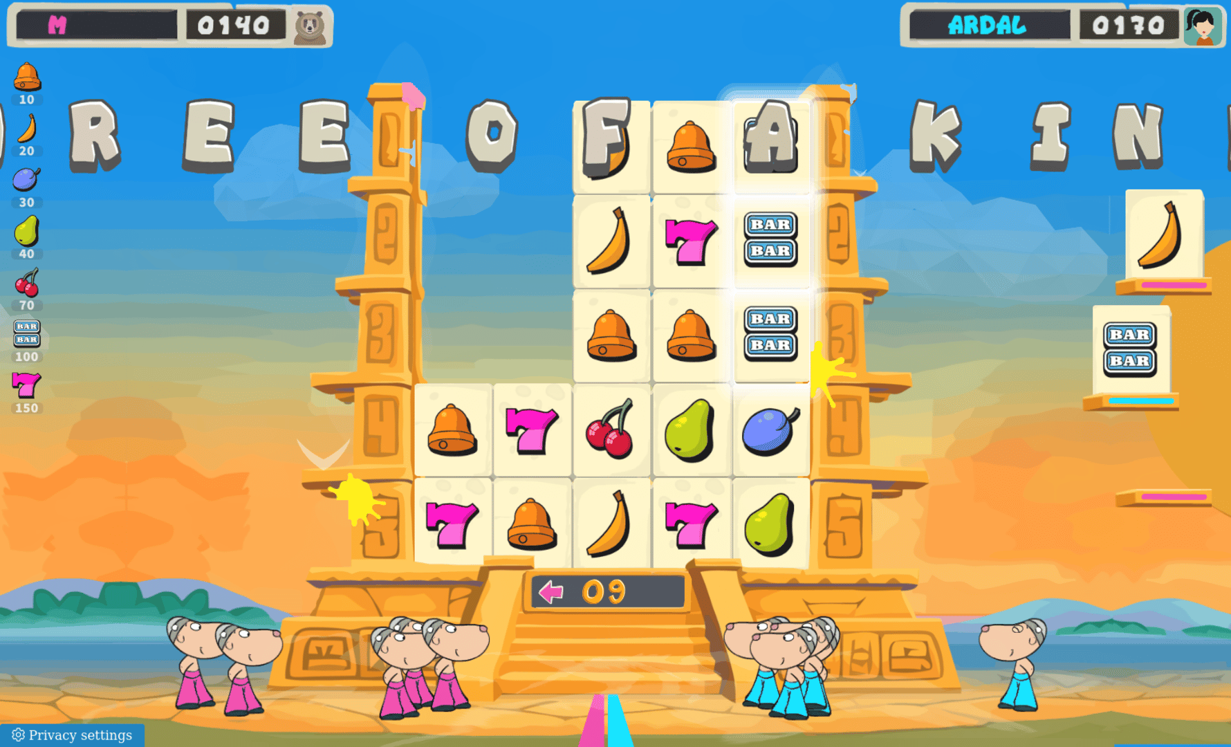 Slide-A-Lama is a two player 2D strategy/puzzle game. The goal is to collect most points by matching at least three tiles of the same type in a five-by-five grid. Players take turns to insert their current tile in one of the rows or columns. If a column is full, the bottom most tiles is crushed, if a row is full, tile falls at the opposite end out of the grid. Once three or more tiles of a kind form a line, the player is awarded points depending on type and number of tiles. With each 60 points of difference between the two players, one of the ten lamas switches the side. The game ends once the first player has all the lamas on their side. The game became popular as a flash game ICQ users could play against their contacts. It later appeared on several mobile platforms and as a website.