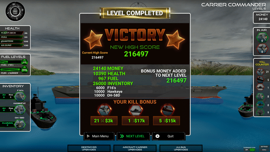 Advance from Commander to Fleet Admiral while in charge of the USS Nimitz (CVN-68) - a supercarrier of the United States Navy, and the lead ship of her class. Manage your Carrier's Assets and Resources to defend yourself from enemy engagements and advance your Naval Career. 15 Levels of challenge!