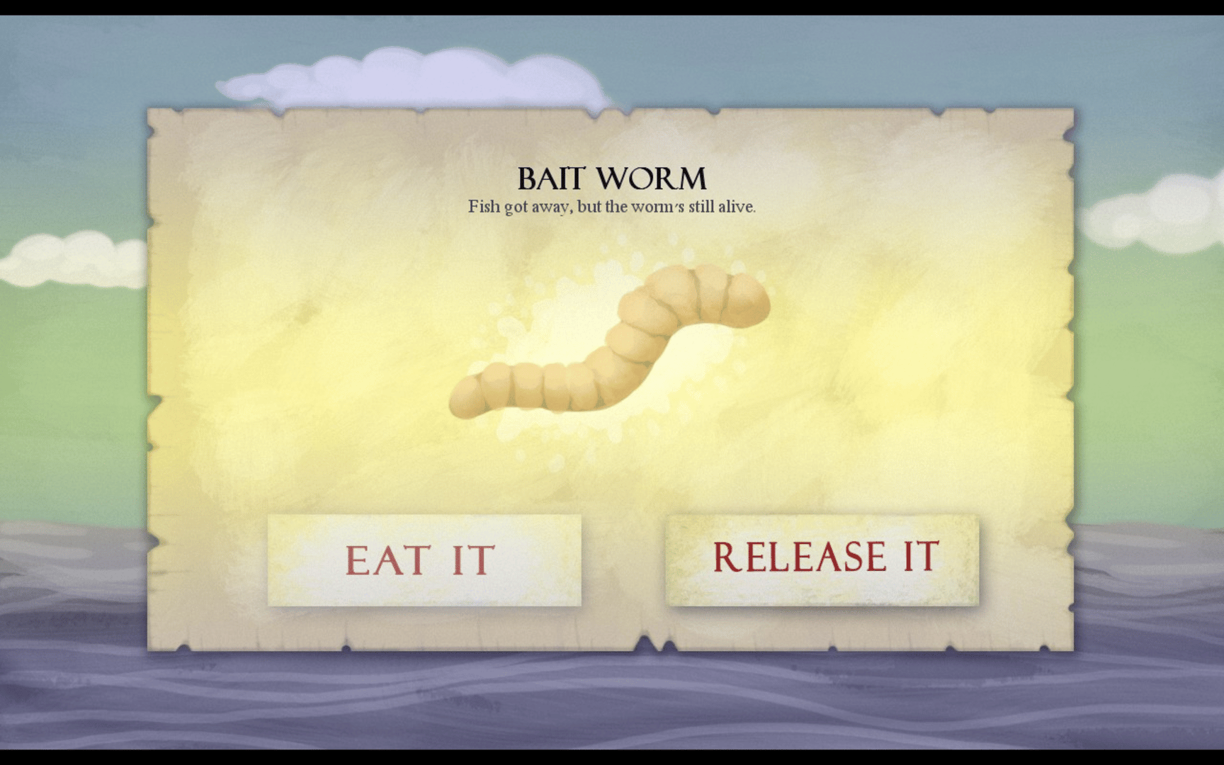 An experimental horror game made in a weekend, exploring isolation, the uncanny valley, and repetition as core concepts. You play as a lonely man out at sea for a lovely day of fishing. A mood piece.