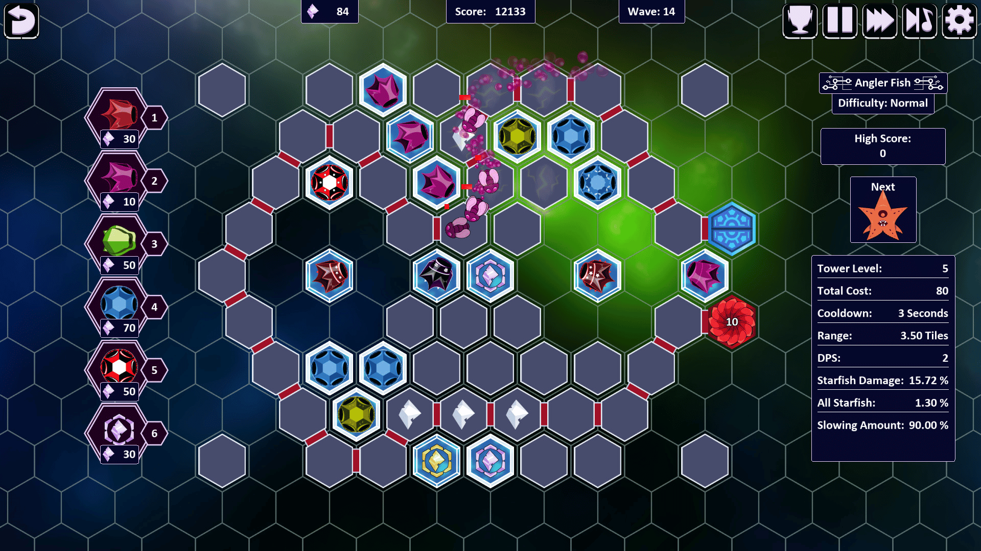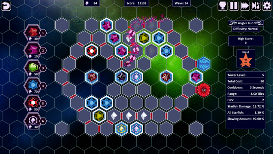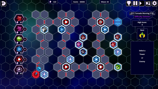 Project Myriad 2 is a tower defense strategy game. Build towers on a grid of hexagons floating in space. 35 levels with unique tiles and mechanics each providing a unique challenge. 3 difficulty levels including extreme mode which has never ending waves of enemies. Strive for your new high score!