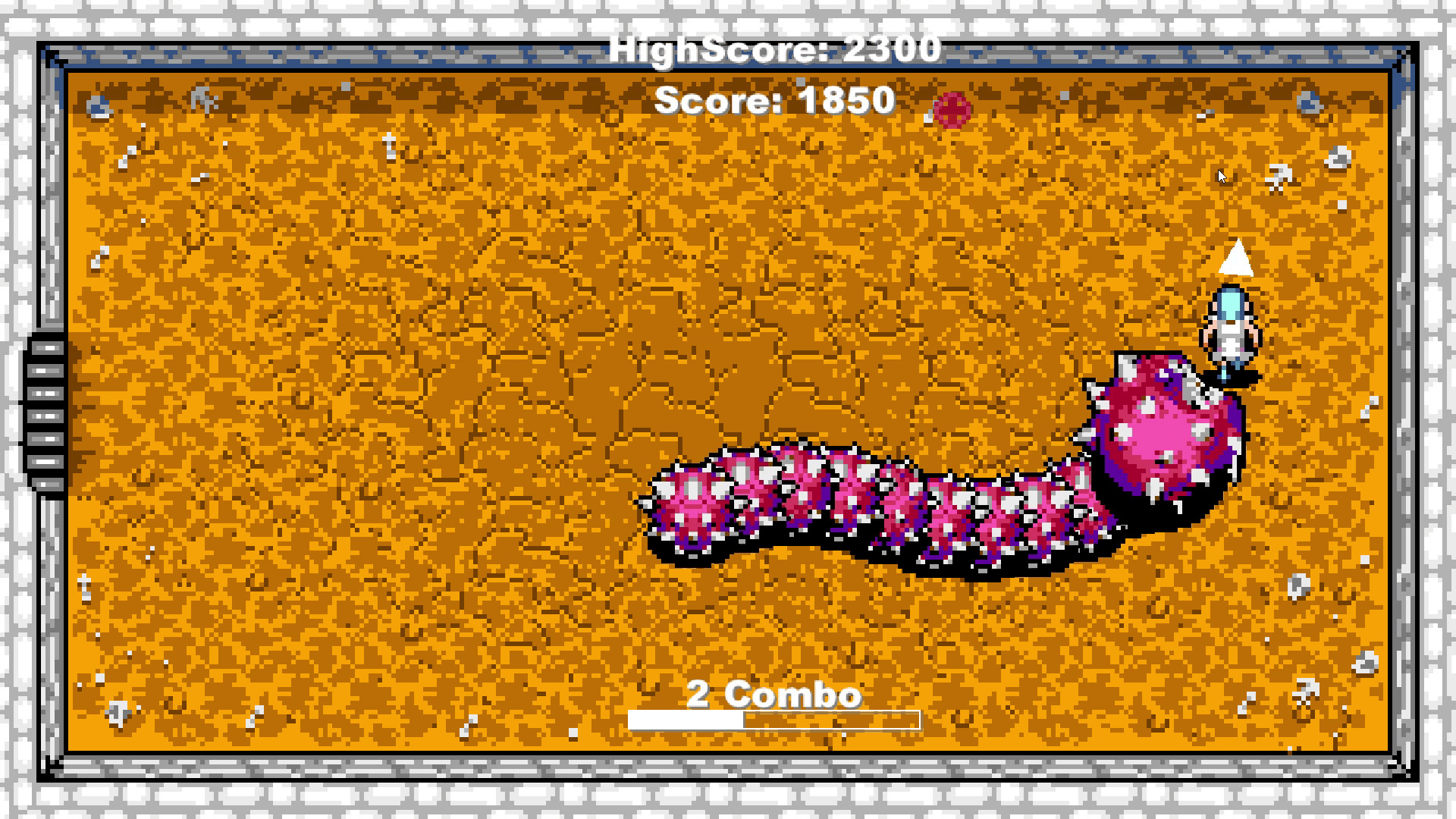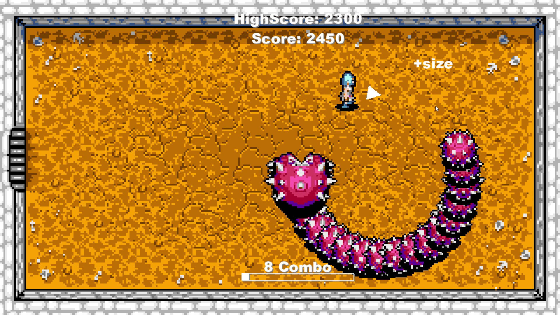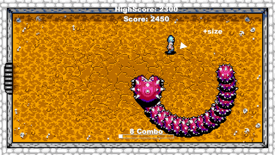 Is basic a classic "Snake" in reverse! You are a gladiator in an arena to die with a giant worm chasing you that grows as you get points. Run, dodge, collect points, power-ups and make combos to get the highest score while staying alive.