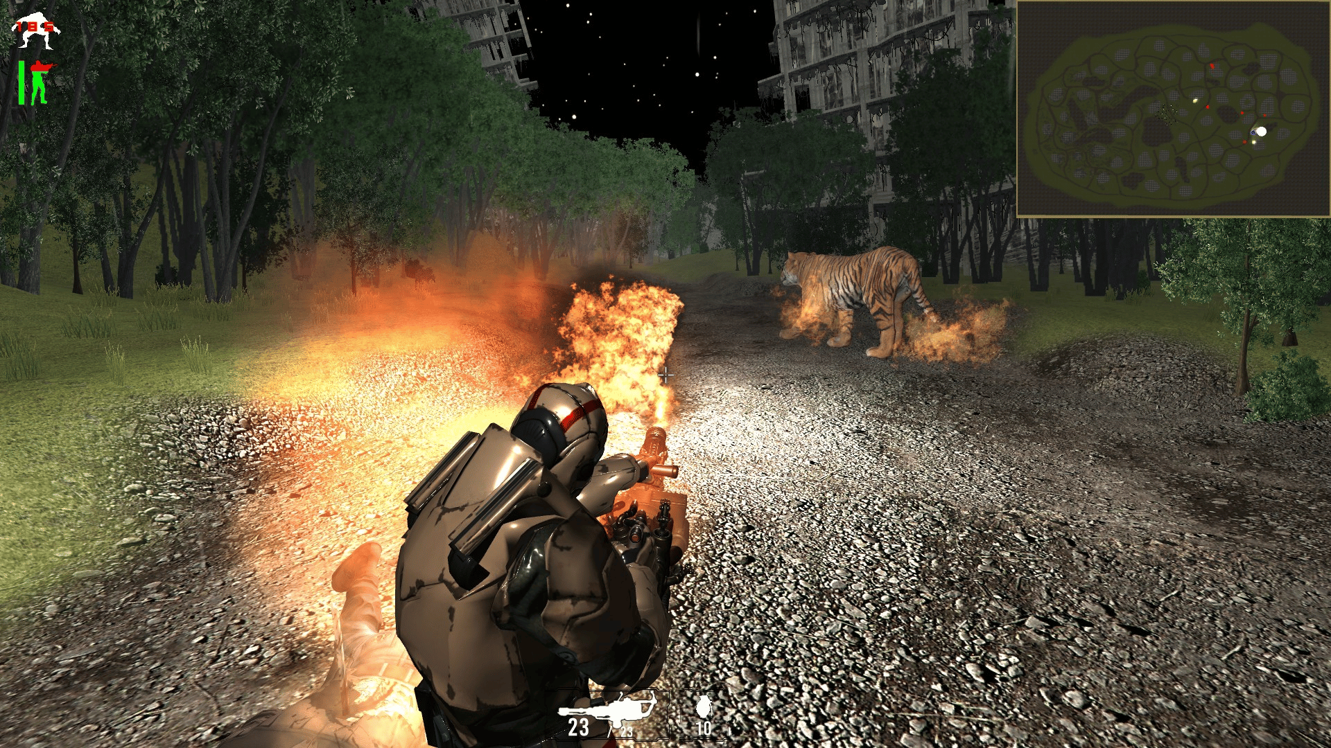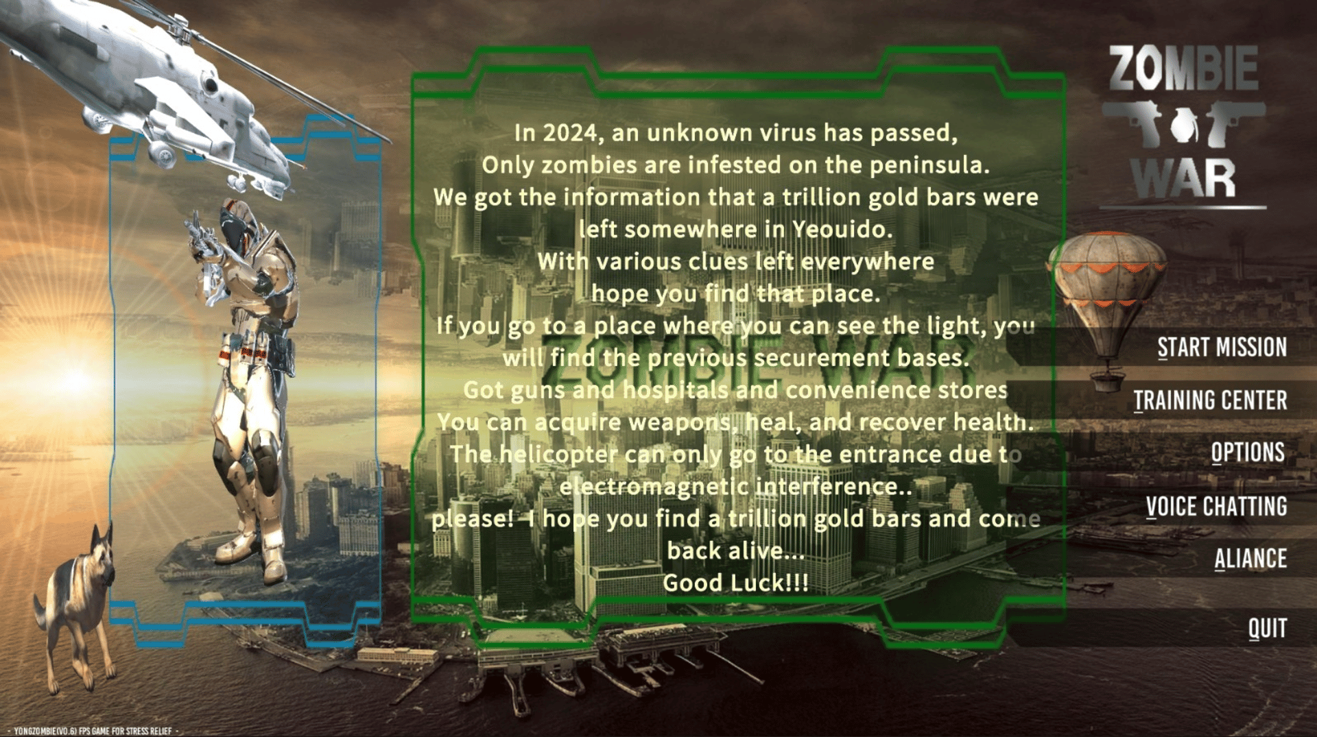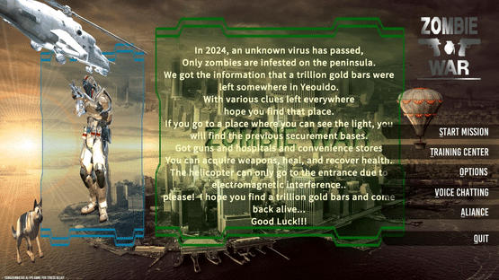 Zombie War is a strategic FPS TPS shooting game to relieve stress. Perform missions in the war against zombies. Even beginners can easily start the game at the training ground. A machine gun (M134), flamethrower, grenade, and flash grenade are added, with up to 2 remote allies (TCP/IP).