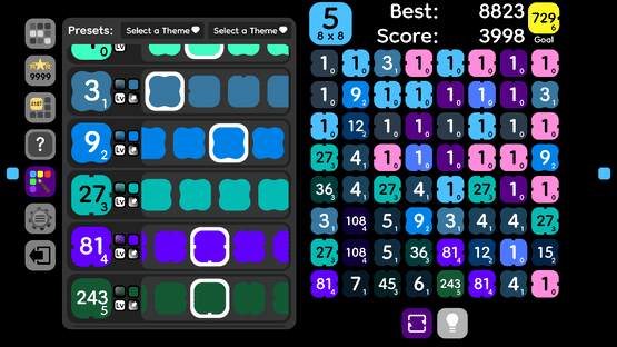 Num One: Revised Edition is a mathematical twist on a match-3 puzzle game. Combine and level up numbers, allowing them to swap further distances. 1s make 3s, 3s, make 9s, 9s make 27s, etc.