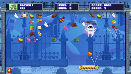 Halloween Candy Break 2 is an arcade game that lets the user knock out Halloween Candy items with a unique Candy paddle and Pumpkin ball. Unique Animated levels, Mini-Bosses and Powerups to collect as you progress through the levels. Thirty Levels to compete in and battle mini bosses on your way to victory. Single player fun and arcade style entertainment.