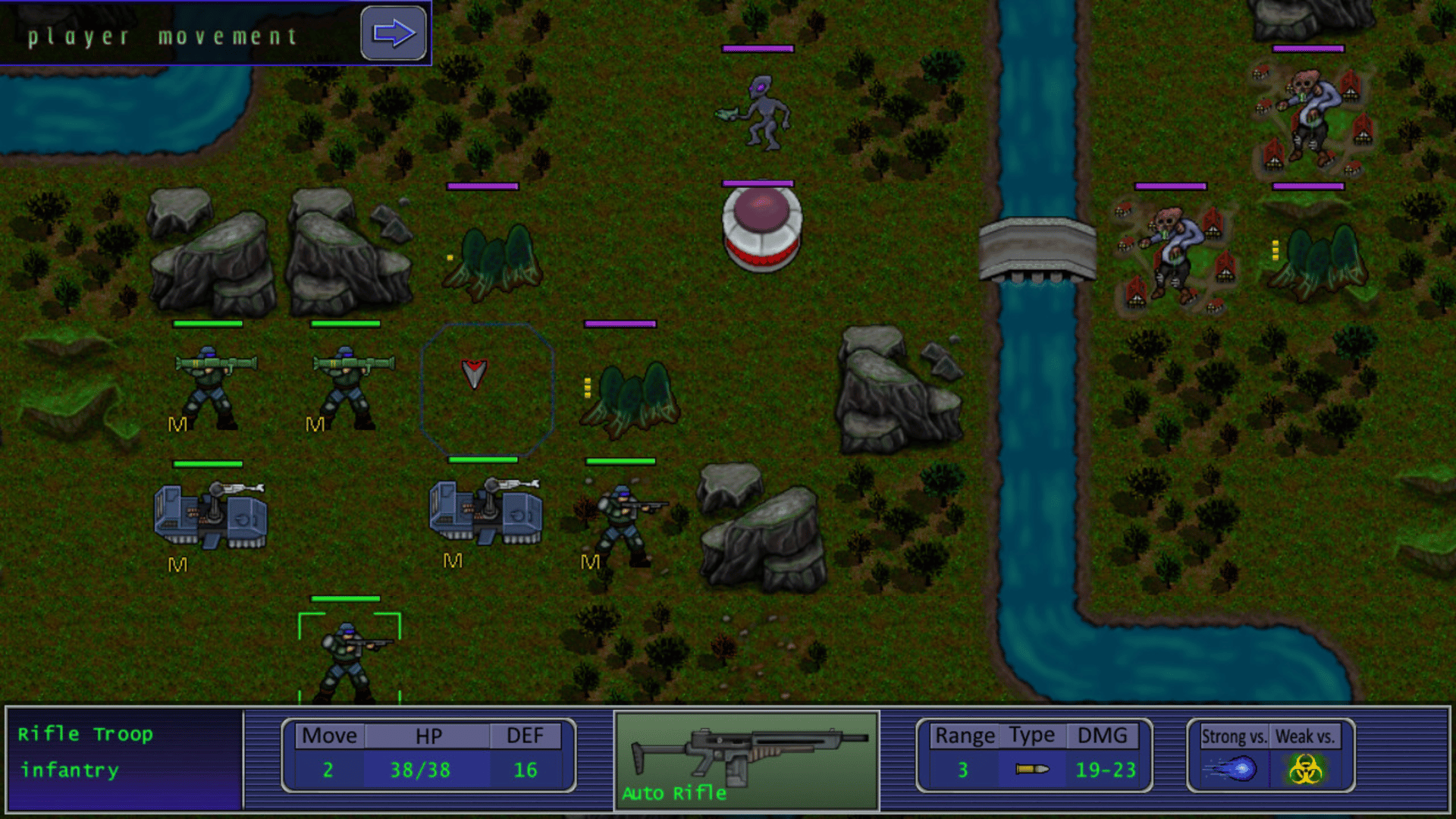 Retro turn-based strategy in a sci-fi world of sinister alien invaders. Take command of troops, tanks and aircraft as you position your units for the perfect strike or unbreakable defense. Plot the course of humanity's war against the insidious Sectyd by choosing your own missions.