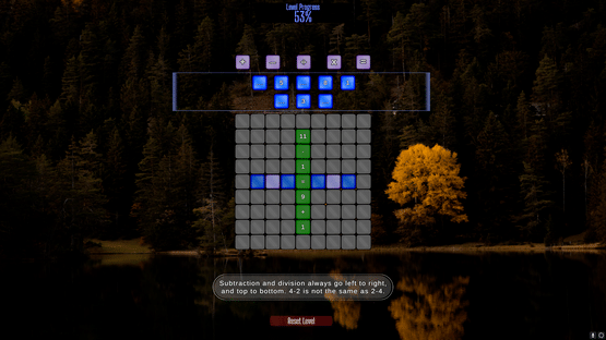 A puzzle game that utilizes the basic principles of math, all set against gorgeous backgrounds and a relaxing, lofi soundtrack. Players must arrange numbers and operators into proper equations in the style of crossword puzzles.