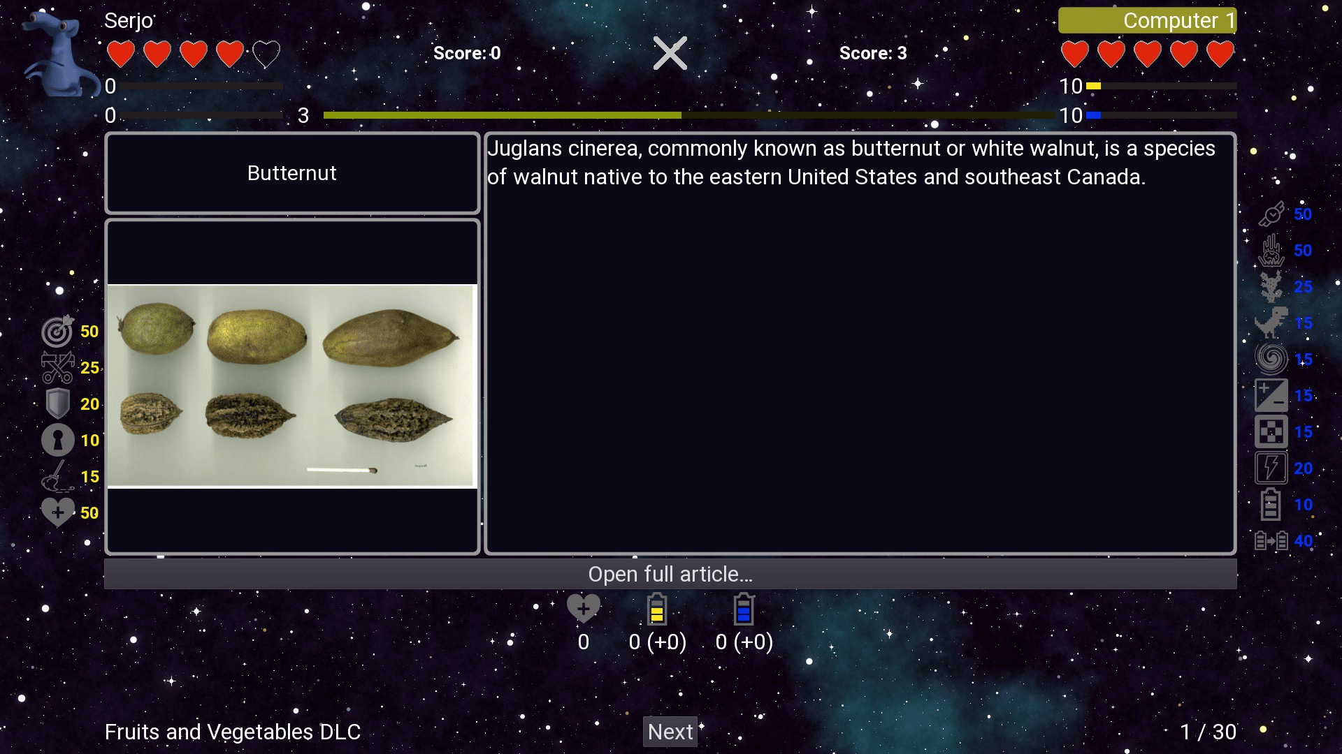 This DLC contains additional questions for the "Fruits and Vegetables" category.