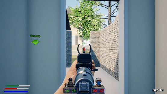A first-person shooter in which there are two game modes. 1. Destroy the enemy generator. 2. Steal the enemy's documents.
