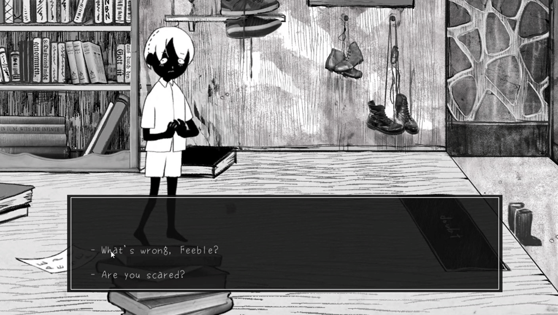 FEEBLE is an interactive simulation game. Meet FEEBLE, the only surviving character in the village devastated by the epidemic, and save FEEBLE from the Grim Reaper. Look around the village, use various puzzles to protect from the Grim Reaper and save the FEEBLE.