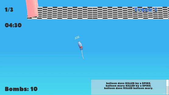 Bloon Rush is a multplayer balloon race game with up to 8 players online! The tracks are brutal and you will have to master your racing skills, while leaving bombs for your enemies! Press B to leave a bomb. Press left-click to accelerate. Do nothing to rotate. Have fun!