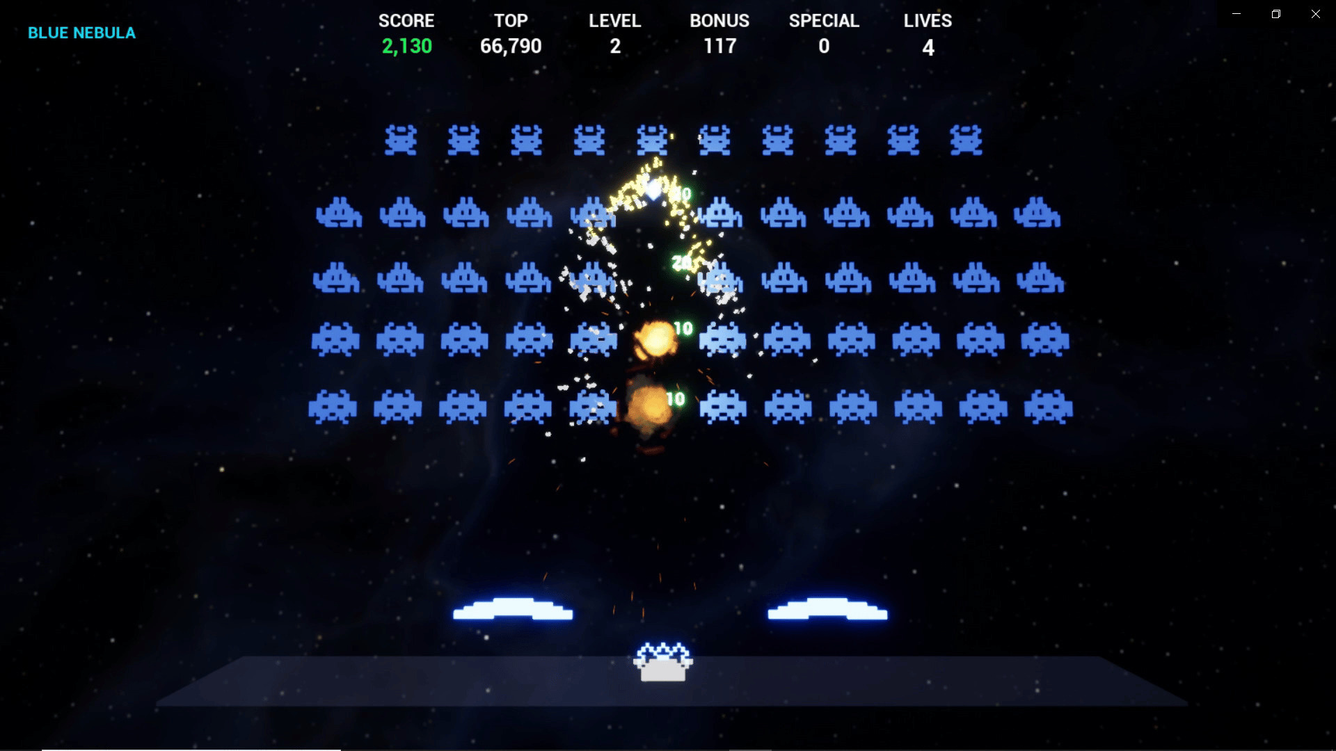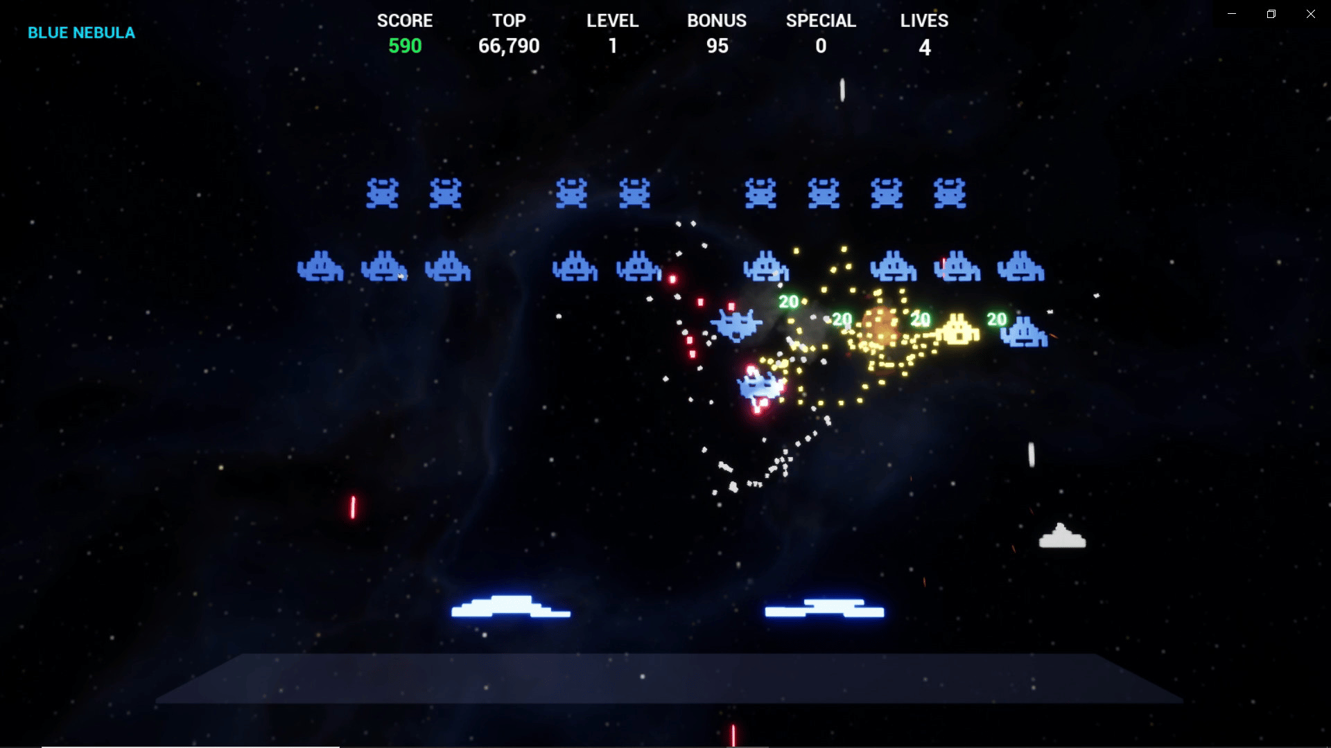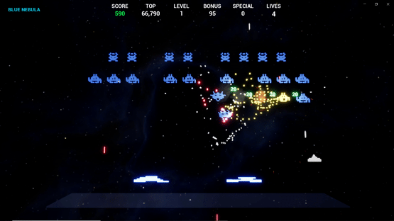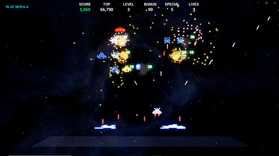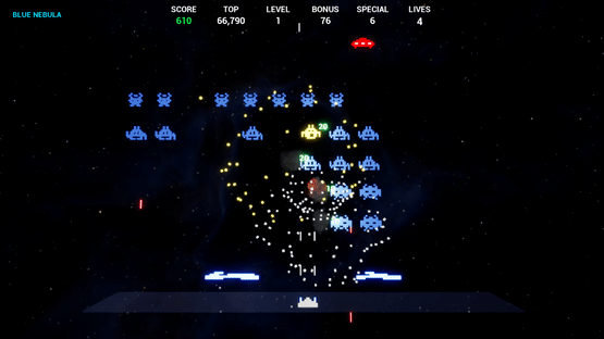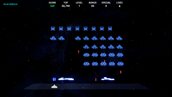 Nebula Invasion was designed for those who enjoy the classic type arcade games, a spaceship shooter with great gameplay. Aliens attack many different ways from marching to dive bombing. You have the tools to fight back with a ship that can power-up with double, triple, rapid fire, or plasma cannon.