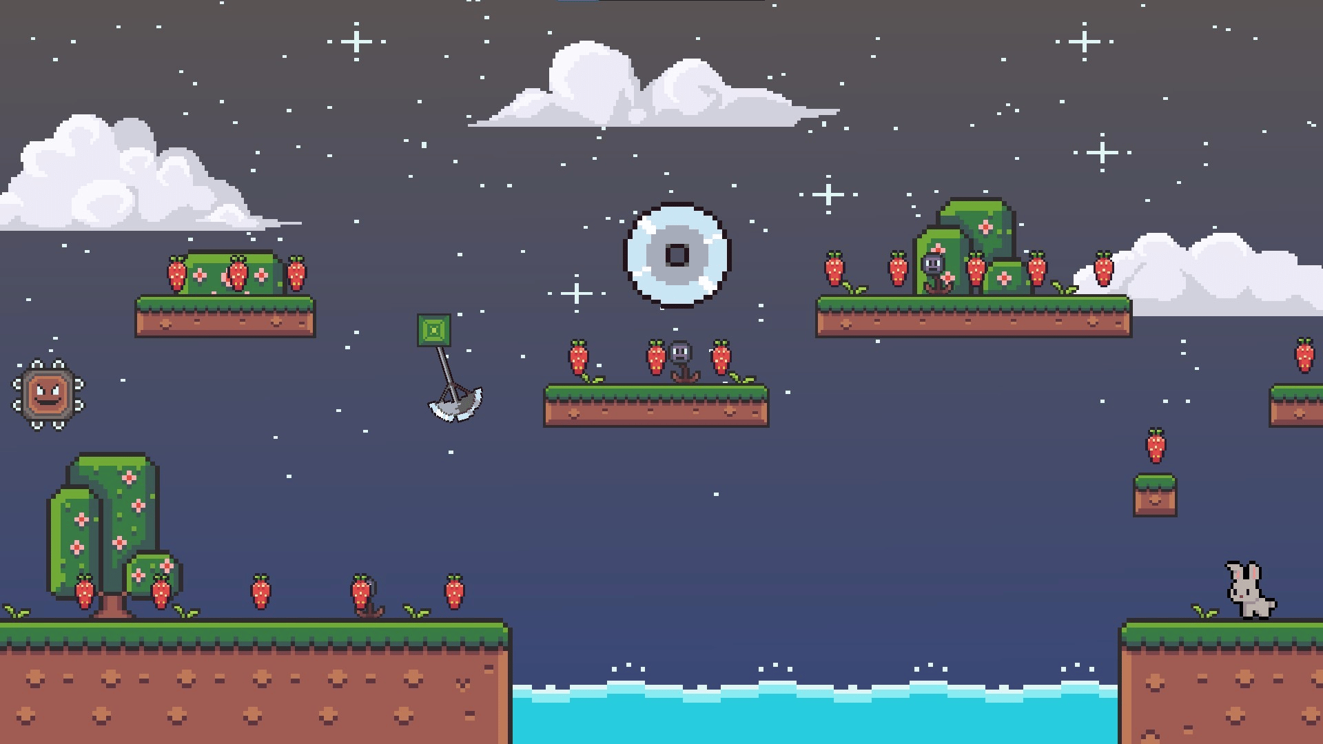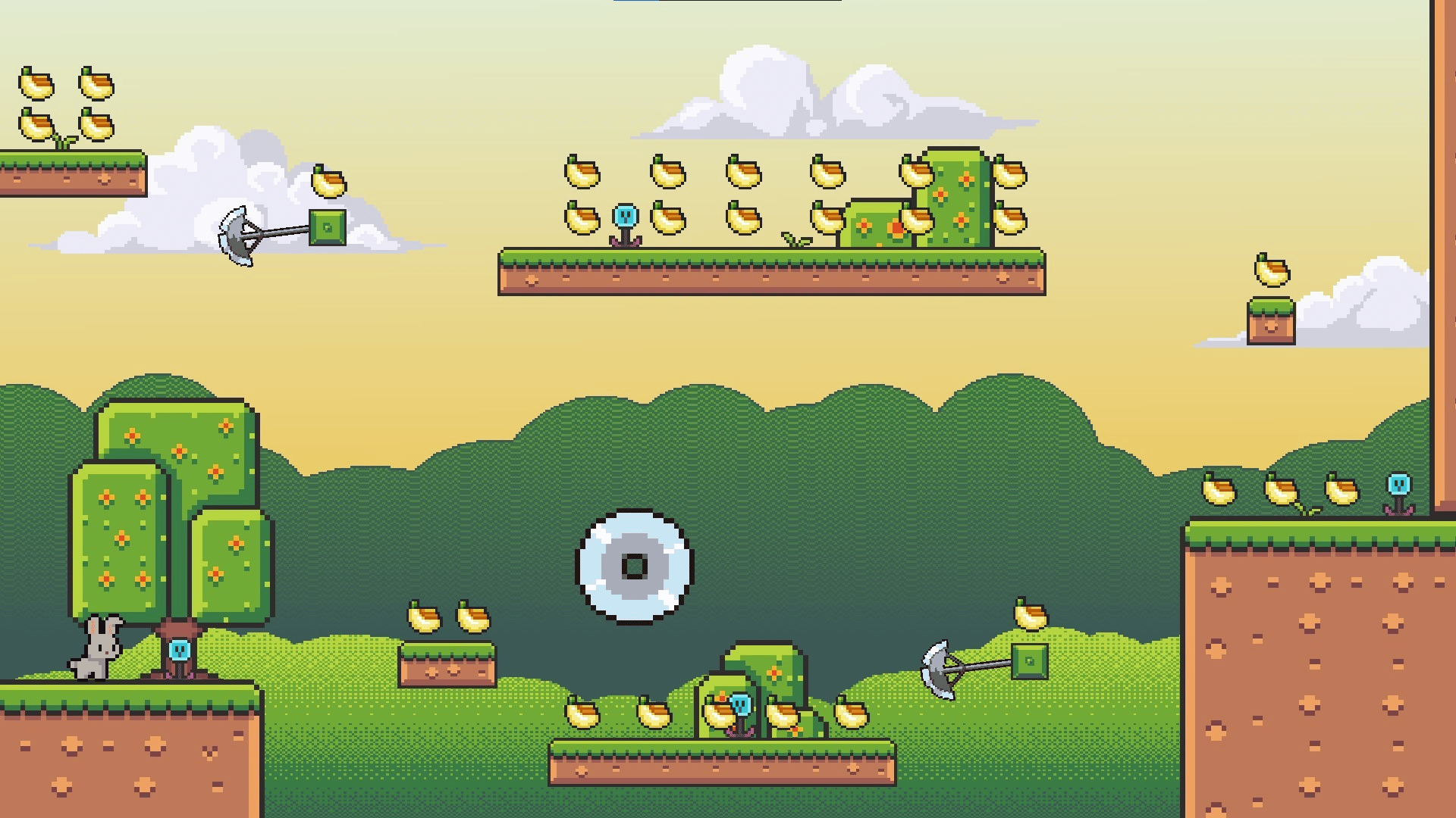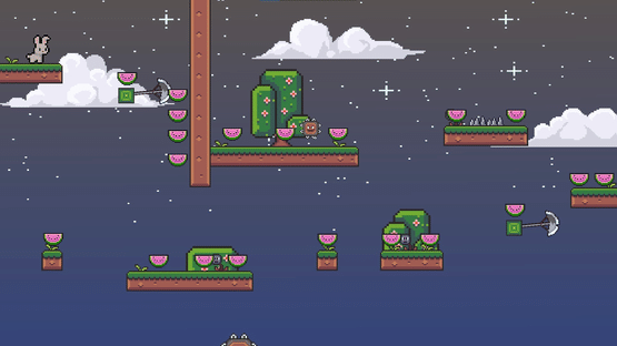 Auro - The Bunny is a 2D platform game, in which the player will have to go through obstacles in order to catch all the fruits of the levels to win.