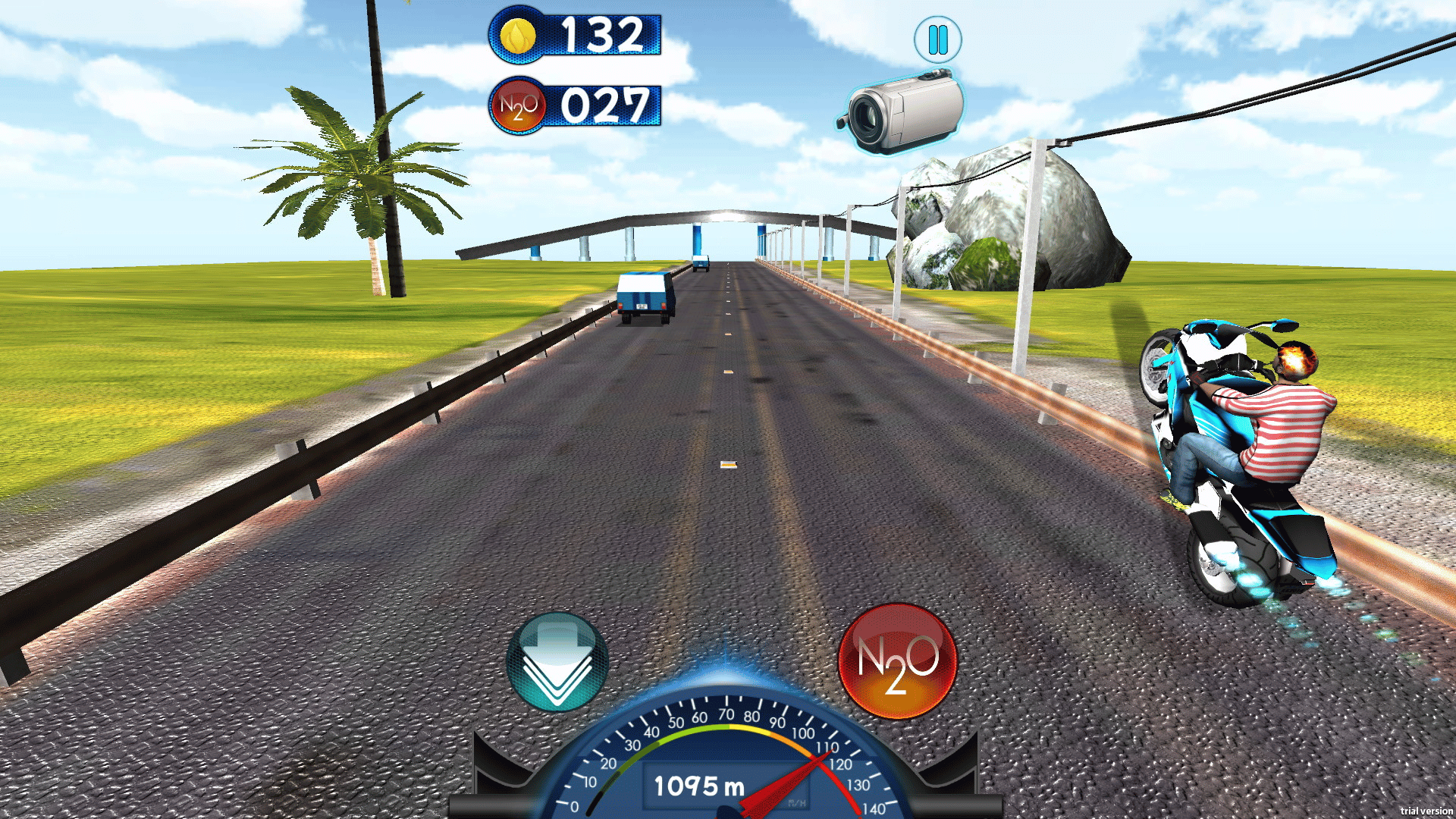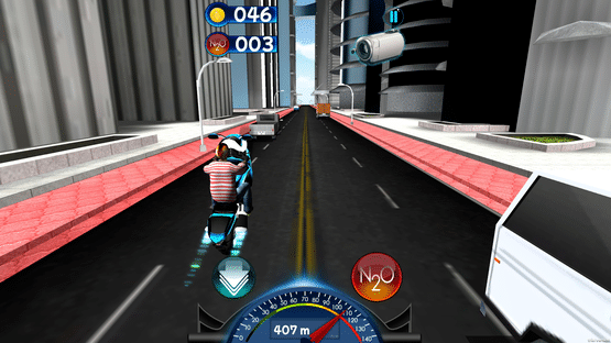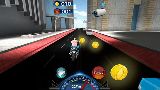 Moto Roller is an arcade motorcycle racing game. You ride a fast motorcycle through a city filled with cars or along a narrow highway.