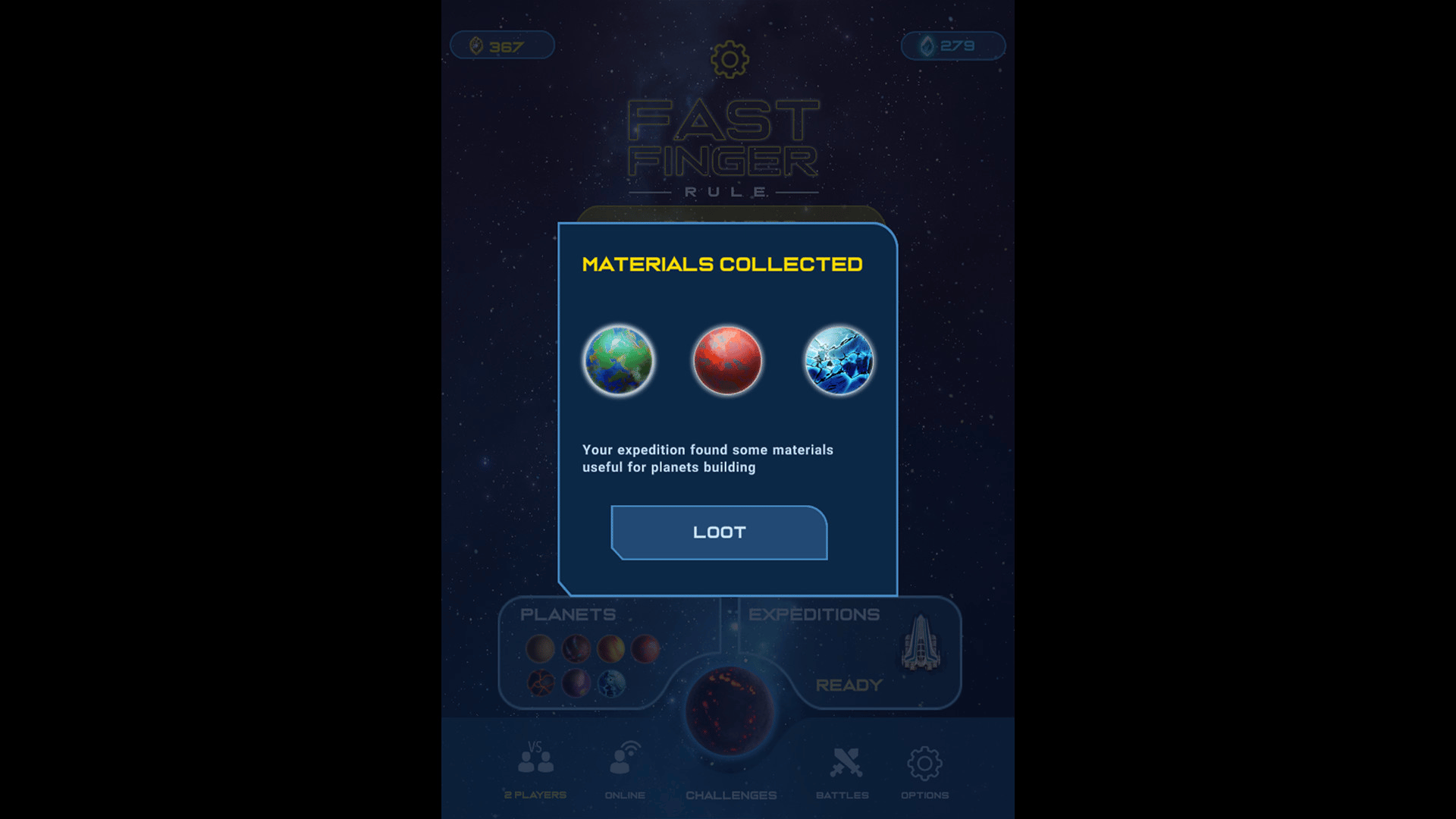 Fast Finger Rule is a minimalistic battle planet duel simulator. To make precise shots you just need to click on your planet at right time. Game has 10+ planet shield types and 15+ planets of 3 different tiers.