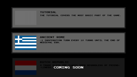 Humankind in a nutshell is a 4X strategy game based on slot mechanisms. Beginning from the Ancient era, you have to feed your tribe and fight against barbarians, study new technology to develop your nation. Build various types of facilities which will help your nation grow to achieve victory.