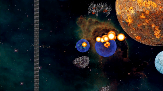Solitarius is a 2D top-down wave shooter set in a sci-fi space environment.