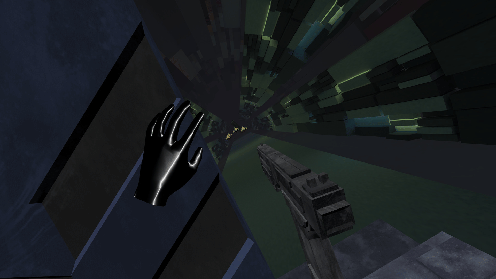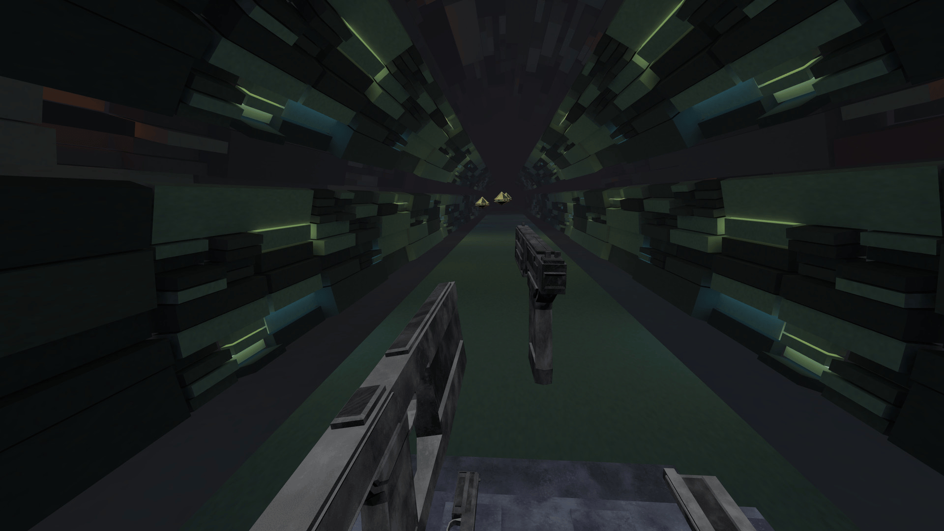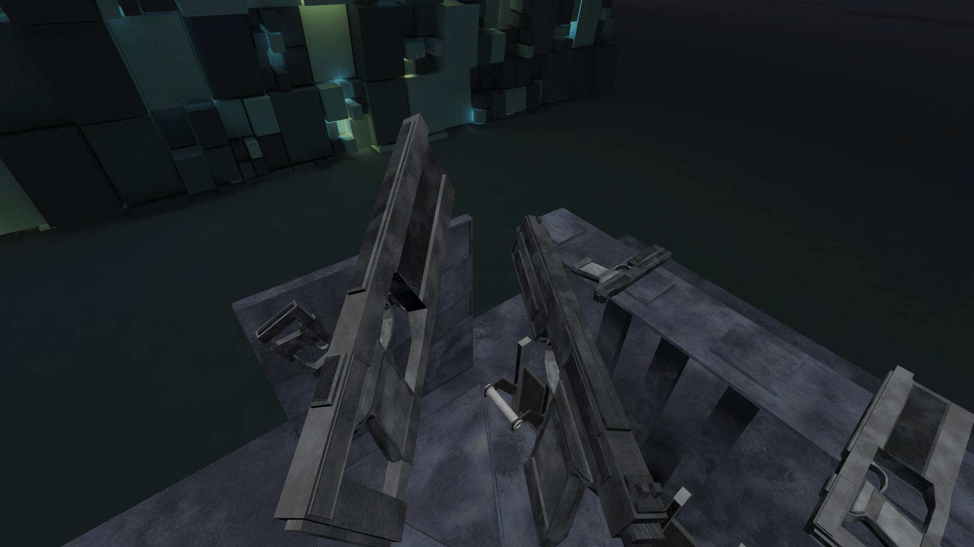 A virtual reality shooting range with randomly generated targets, obstacles, and a countdown timer.