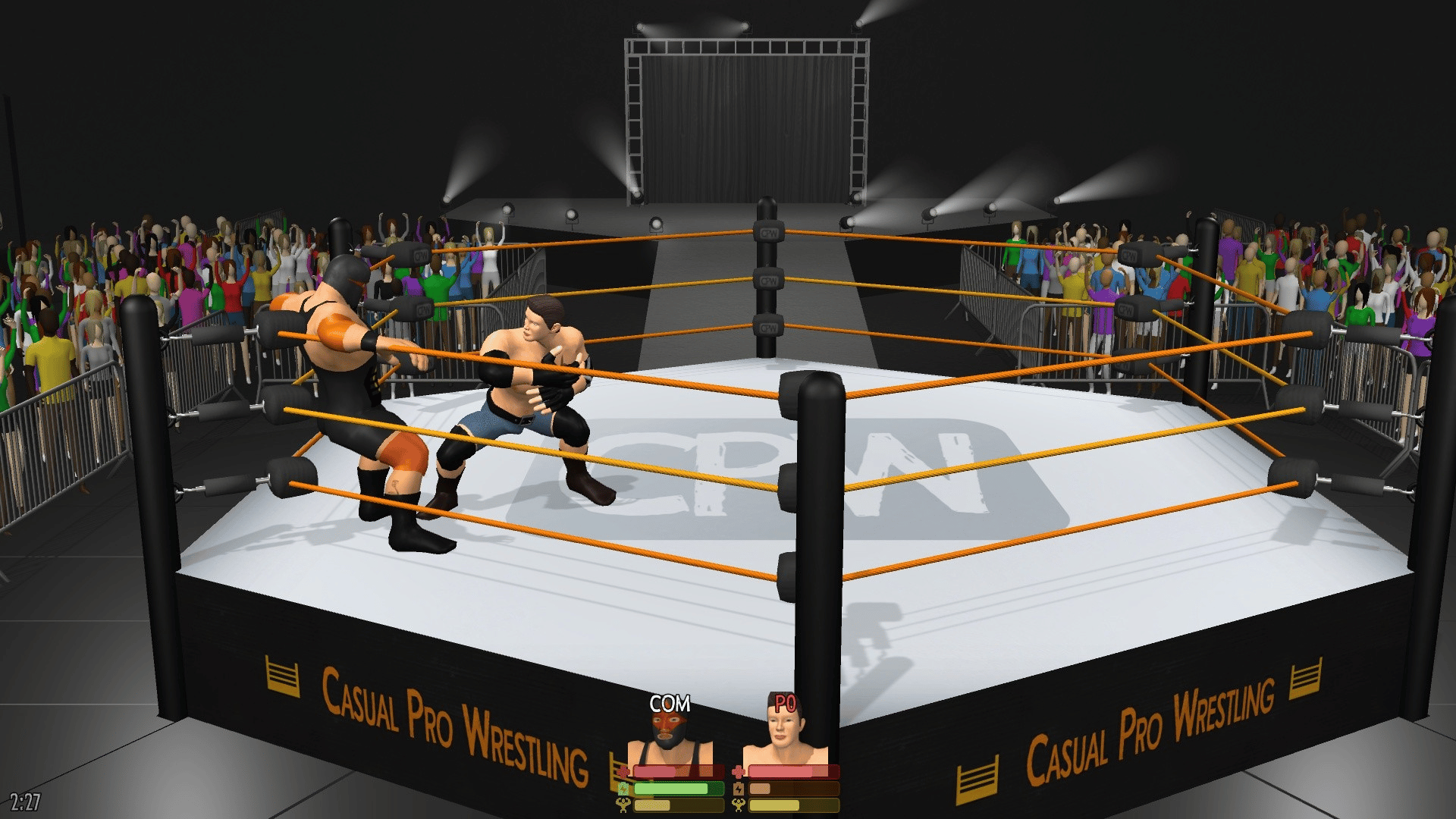 Casual Pro Wrestling is a professional wrestling game with an emphasis on fun. It blends intuitive controls inspired by genre classics with ragdoll physics for added fun and drama. It features couch and online multiplayer and offers a plethora of possibilities for customization.