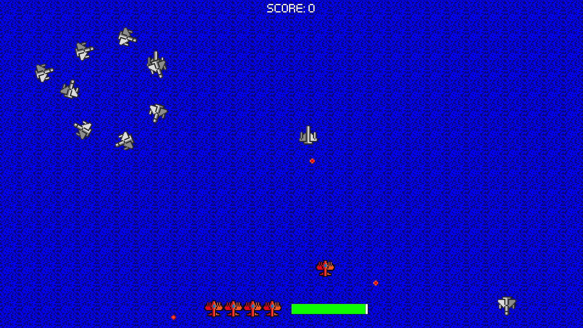 The game's system is somewhere between air combat and naval warfare. It's a lot like the old game I played as a kid, and we control fighters to destroy the enemy's fleet.