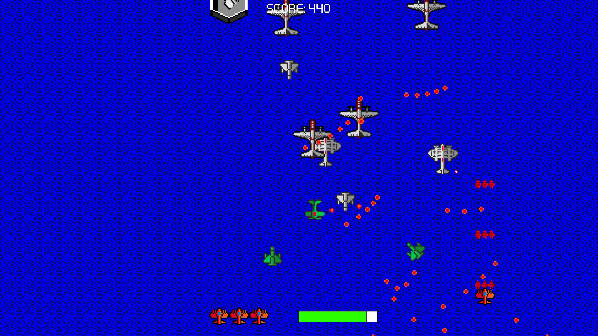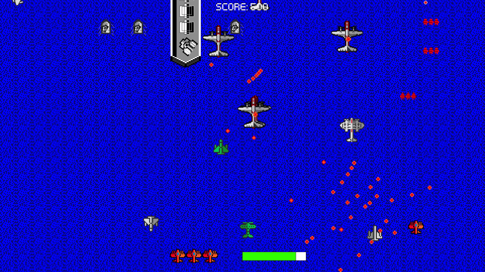 The game's system is somewhere between air combat and naval warfare. It's a lot like the old game I played as a kid, and we control fighters to destroy the enemy's fleet.