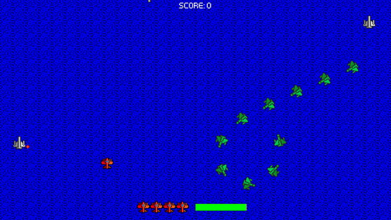 The game's system is somewhere between air combat and naval warfare. It's a lot like the old game I played as a kid, and we control fighters to destroy the enemy's fleet.