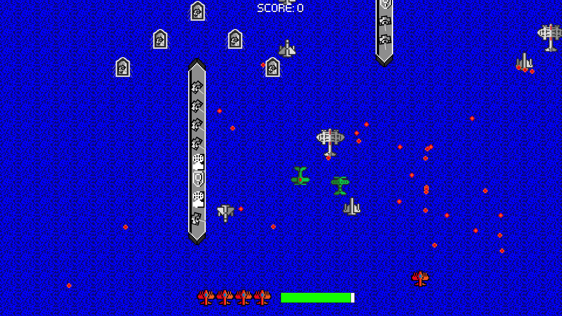 The game's system is somewhere between air combat and naval warfare. It's a lot like the old game I played as a kid, and we control fighters to destroy the enemy's fleet.