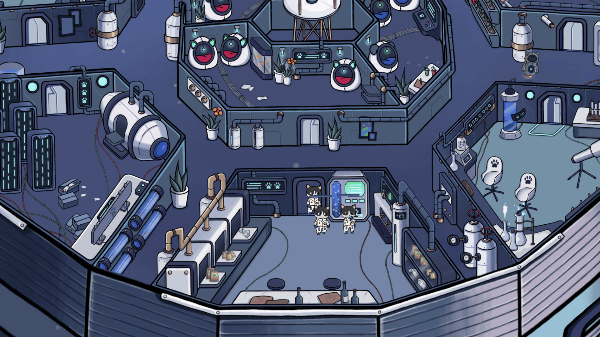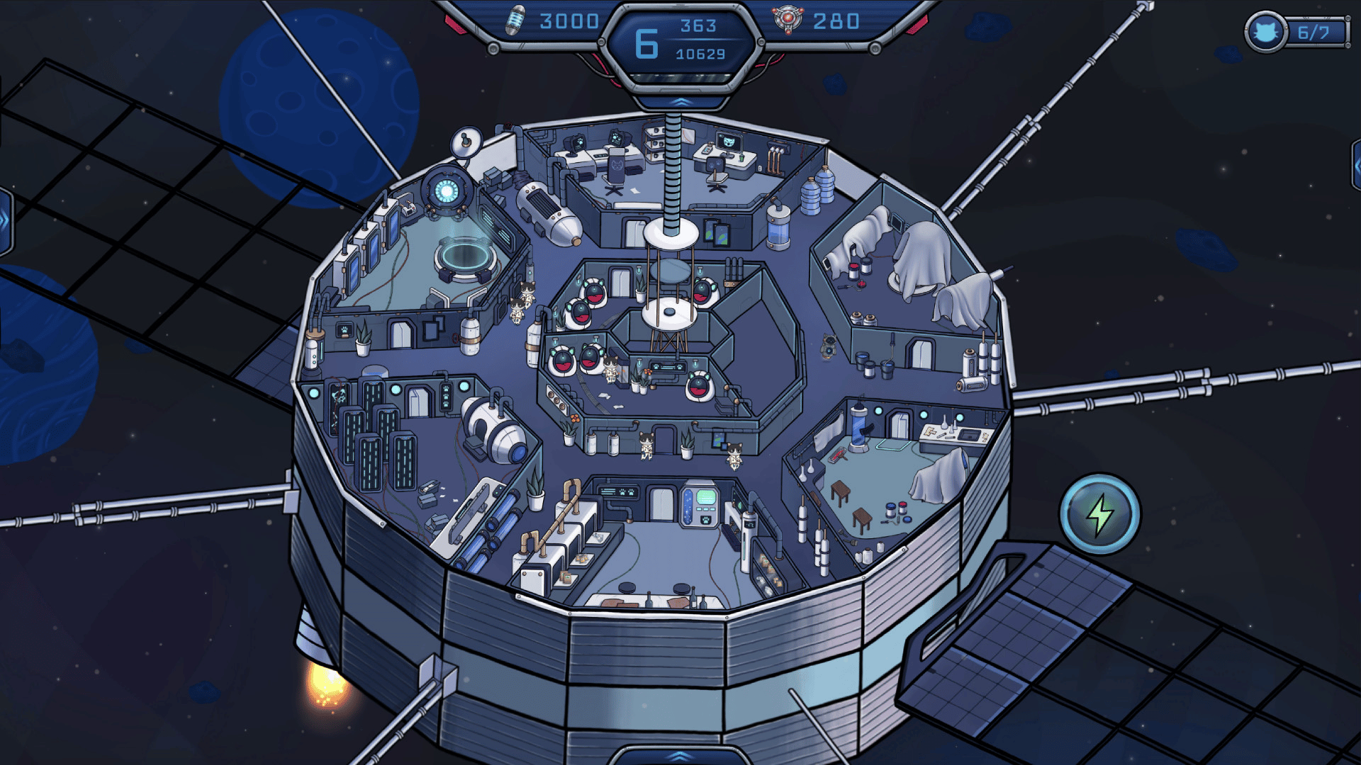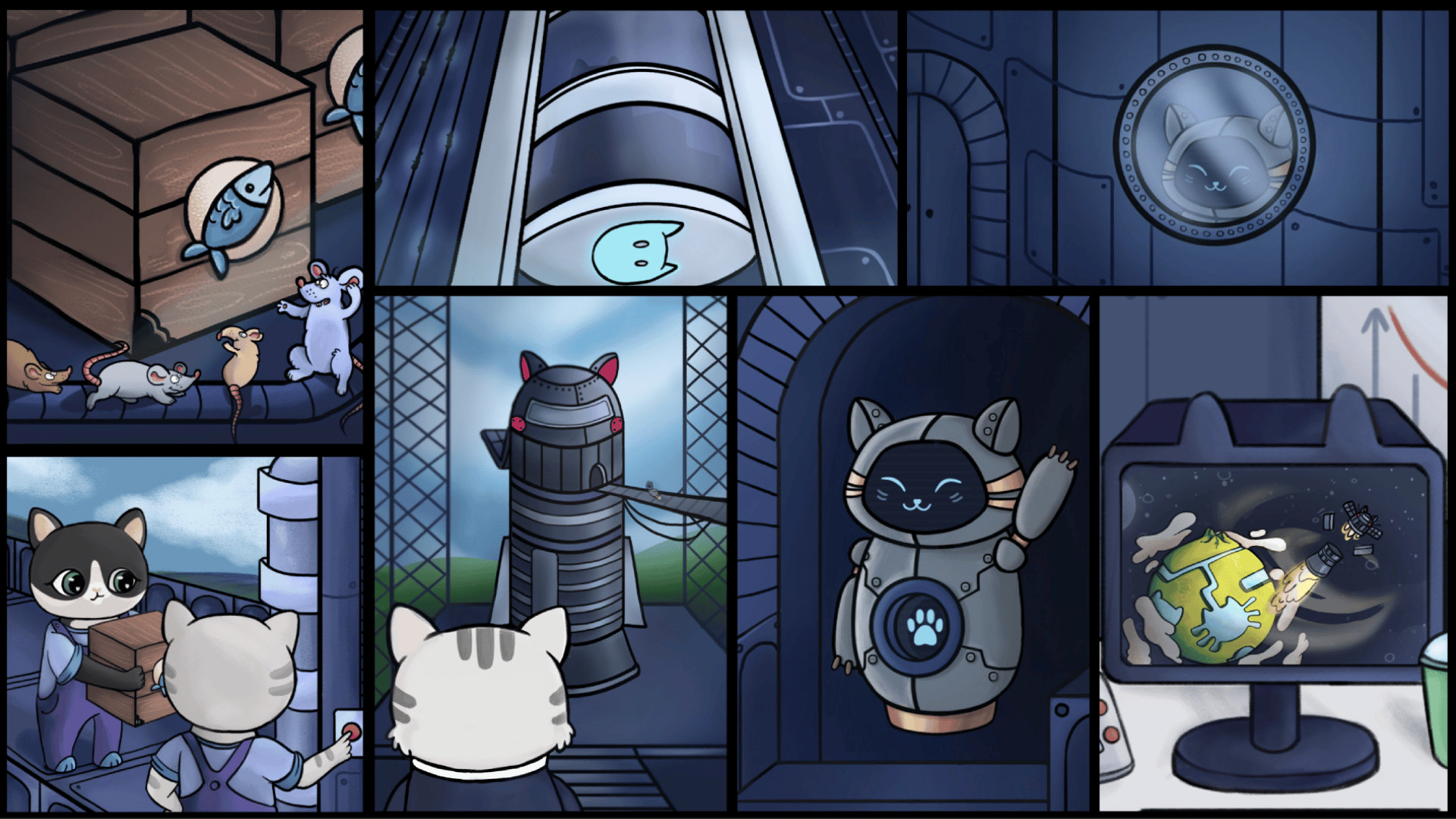 Help the cats find alien friends! By exploring space using "Catellite-609" cats will be able to: build rooms, upgrade "Catellite-609" facilities, and develop a cat crew. Enjoy a unique space adventure!