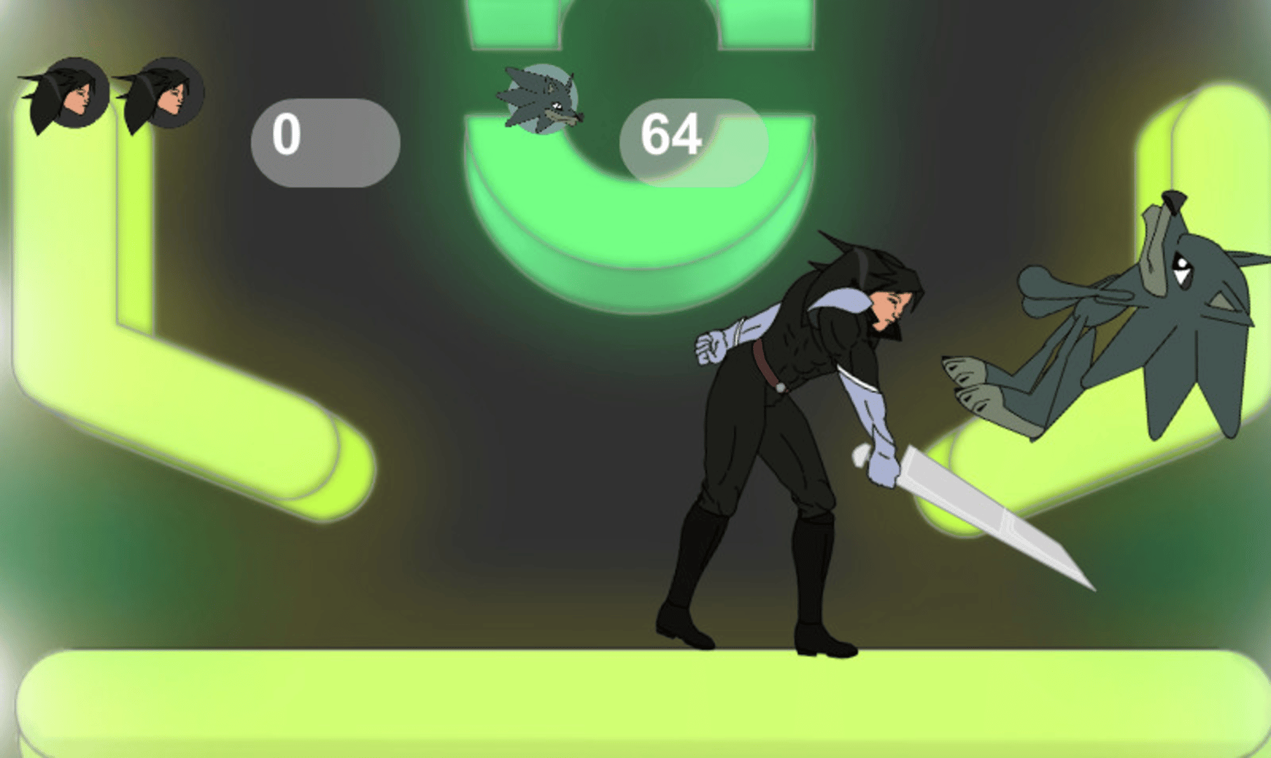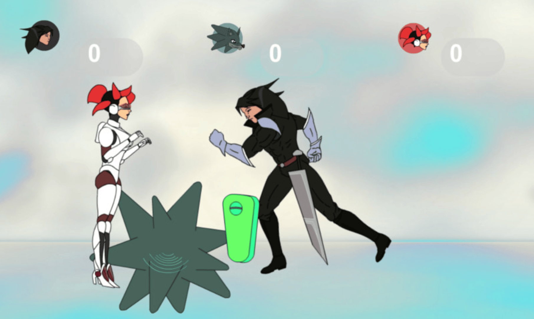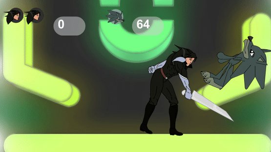 Knock opponents as far off-screen as possible. A platform-fighter with extremely simply controls. Game is played in rounds, where everything resets when someone is knocked off the screen, until someone is the last character standing.