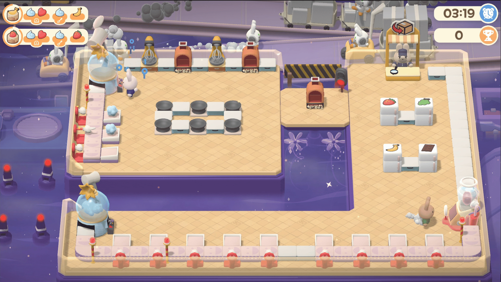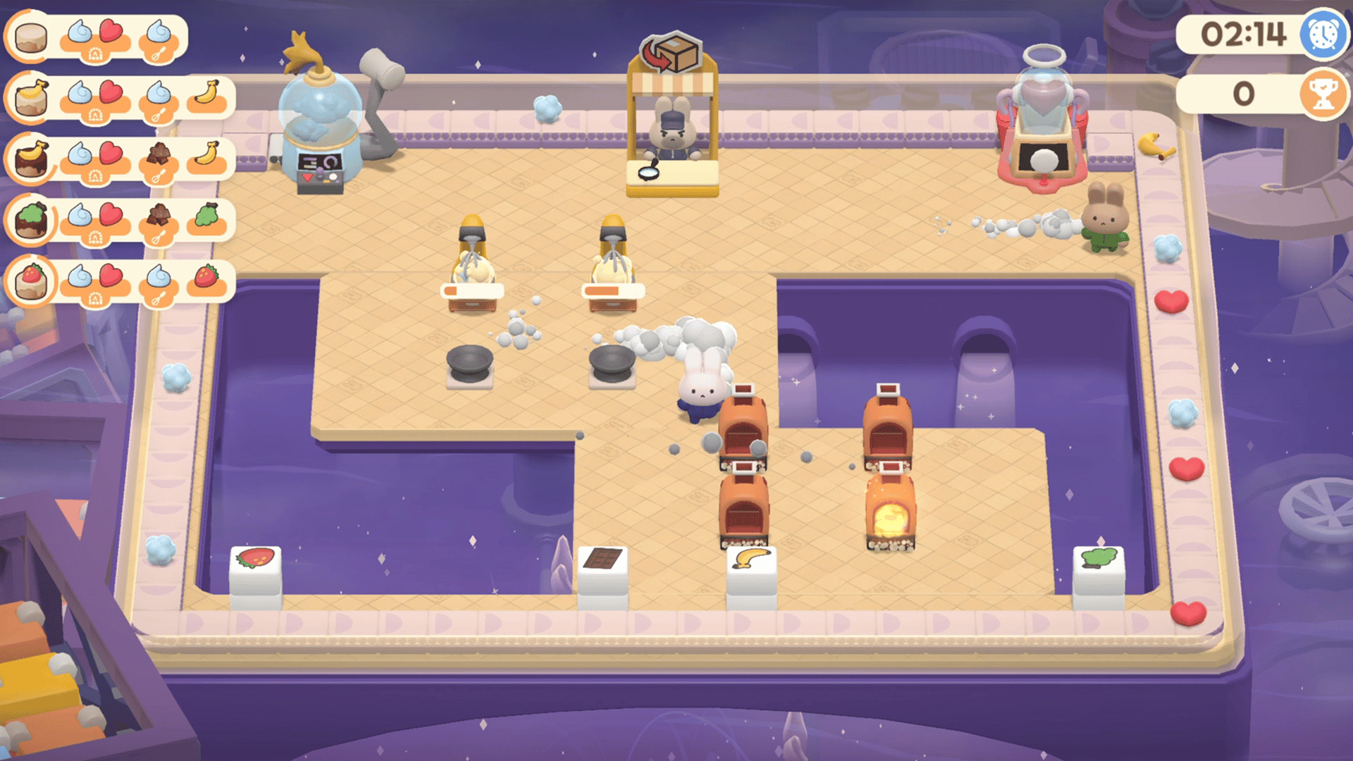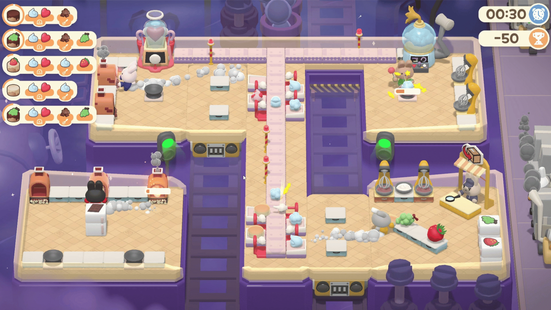 Turn the Line is a co-op tycoon game on the PC Steam platform where 1-4 players complete a dessert. Cute characters and simple controls, but difficult difficulty! Anyone can get started, but not everyone can do it perfectly! Challenge perfection for the rabbit's leaving work on time!