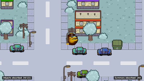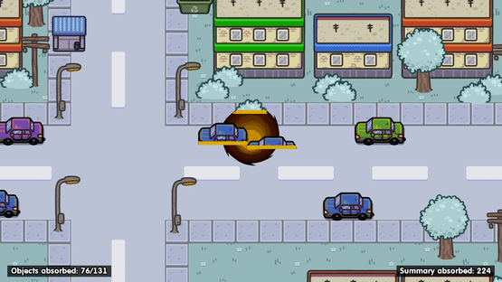 You play the role of a black hole that has penetrated our world. Your task is to absorb as many houses, trees, cars and other objects as possible.