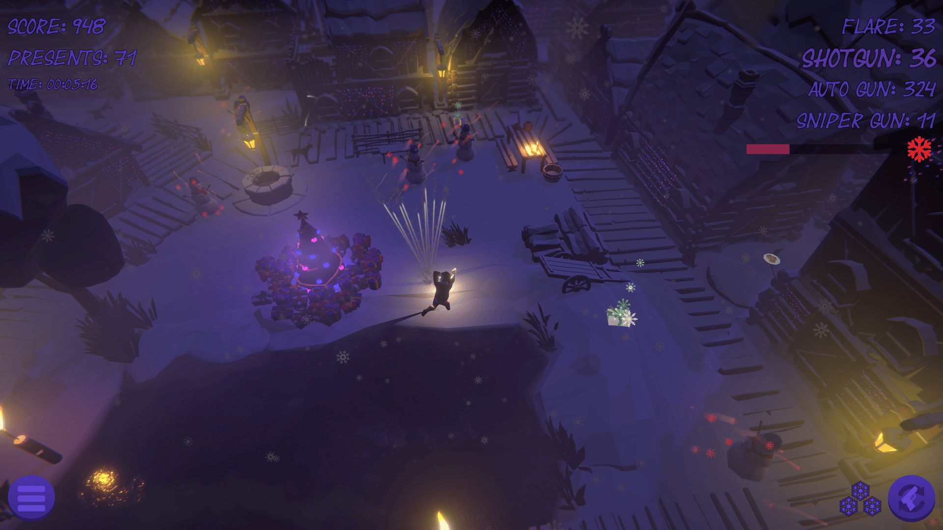 Snowmen are stealing the Christmas presents! Santa Claus must protect the gifts! Tell him where to move while he shoot snowballs against the Snowmen! Pickup blinking Presents to acquire new Snowball-Launchers or activate an effect.