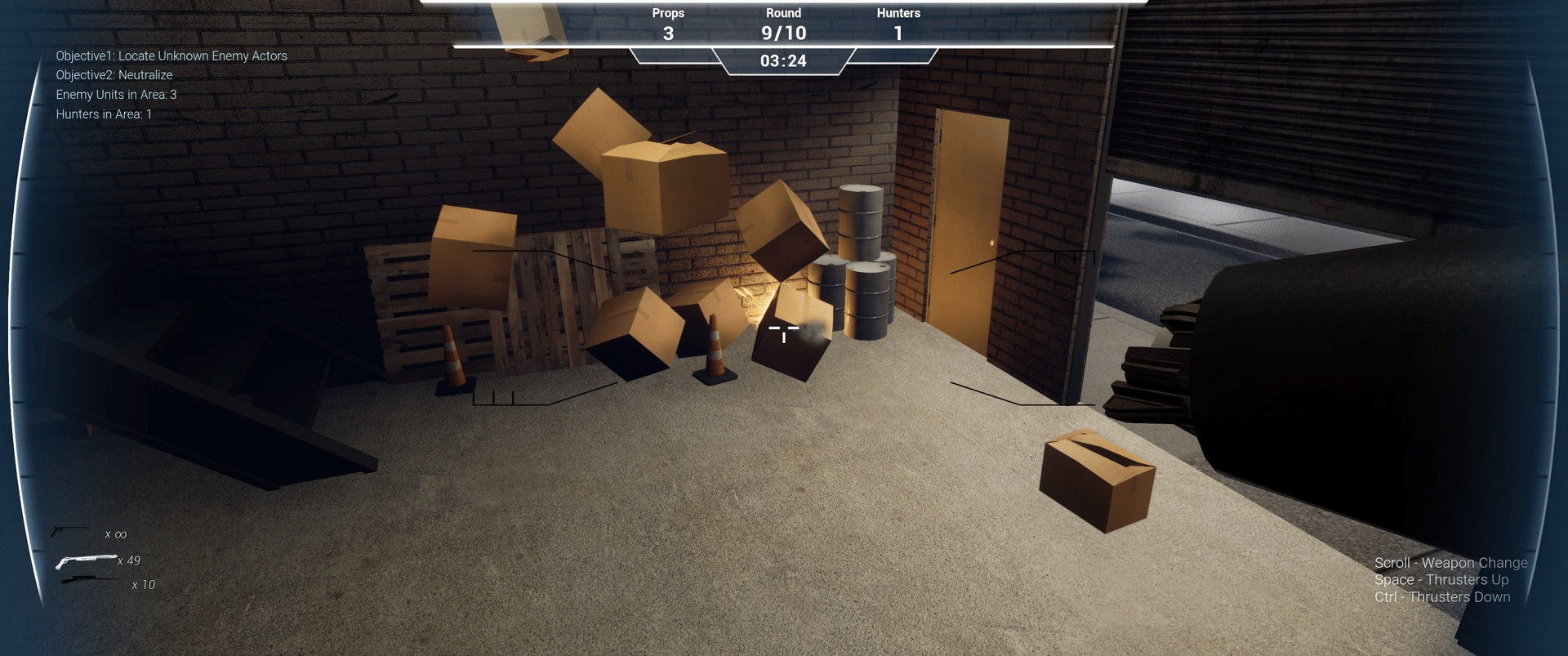 Jump into an exciting new take on a classic concept! Alien Prop Hunt is an action packed team-based game where one team desperately tries to hide in plain sight, while the other relentlessly searches through environments to find them!