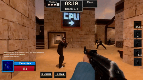 A group of wise guys found a dead body; there are traitors amongst them... Innocent players have to collect clues to find the murderer(s) and kill them!