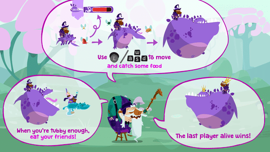 Dear fellow wizard, get ready to enter our frantic 4-player arena party game! With your powerful (but random) spells and potions, feed your little cute Draglutton to make it so big it devours all your friends in a colorful and quirky chaos (without any dragon body shaming here)!