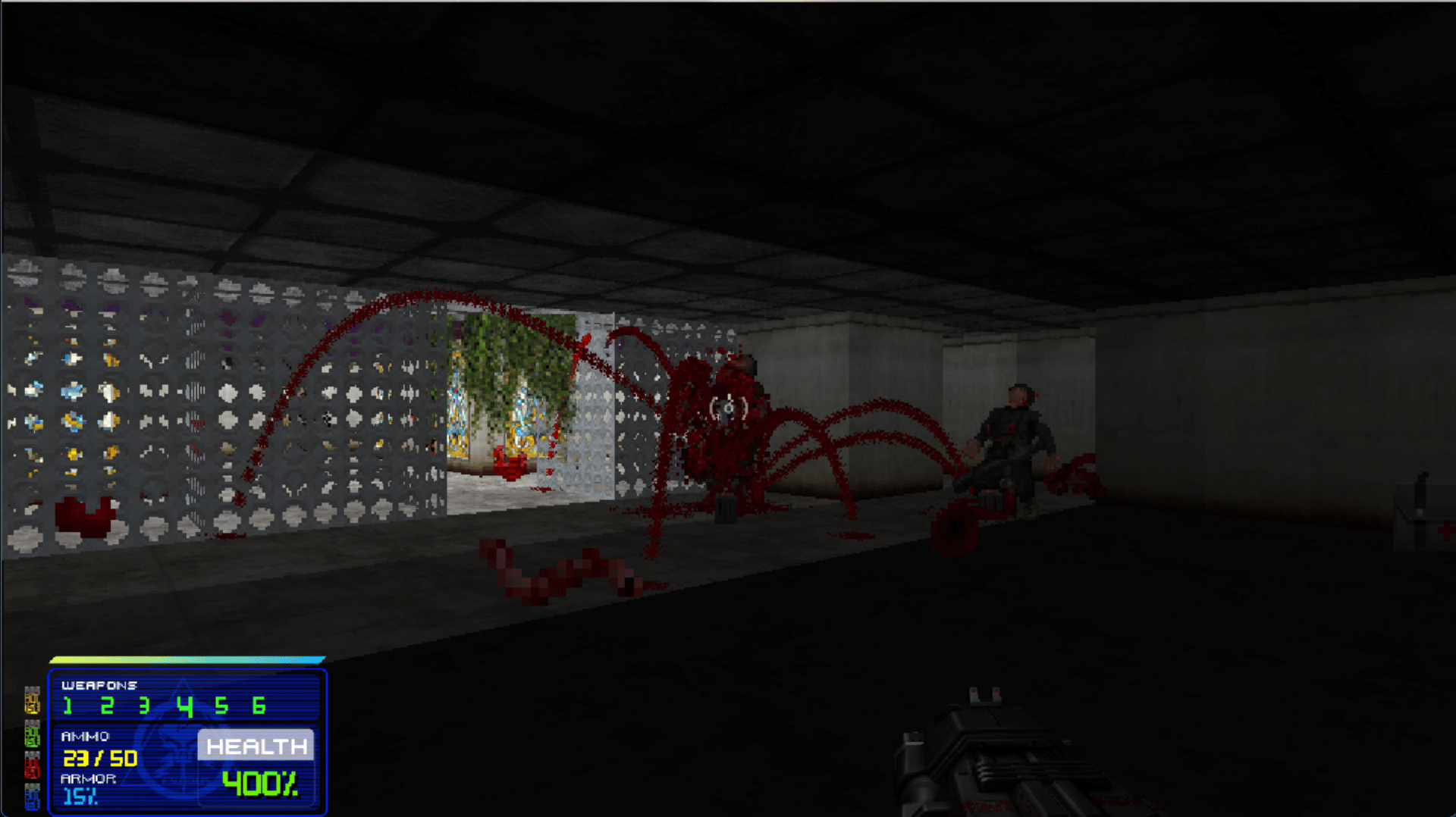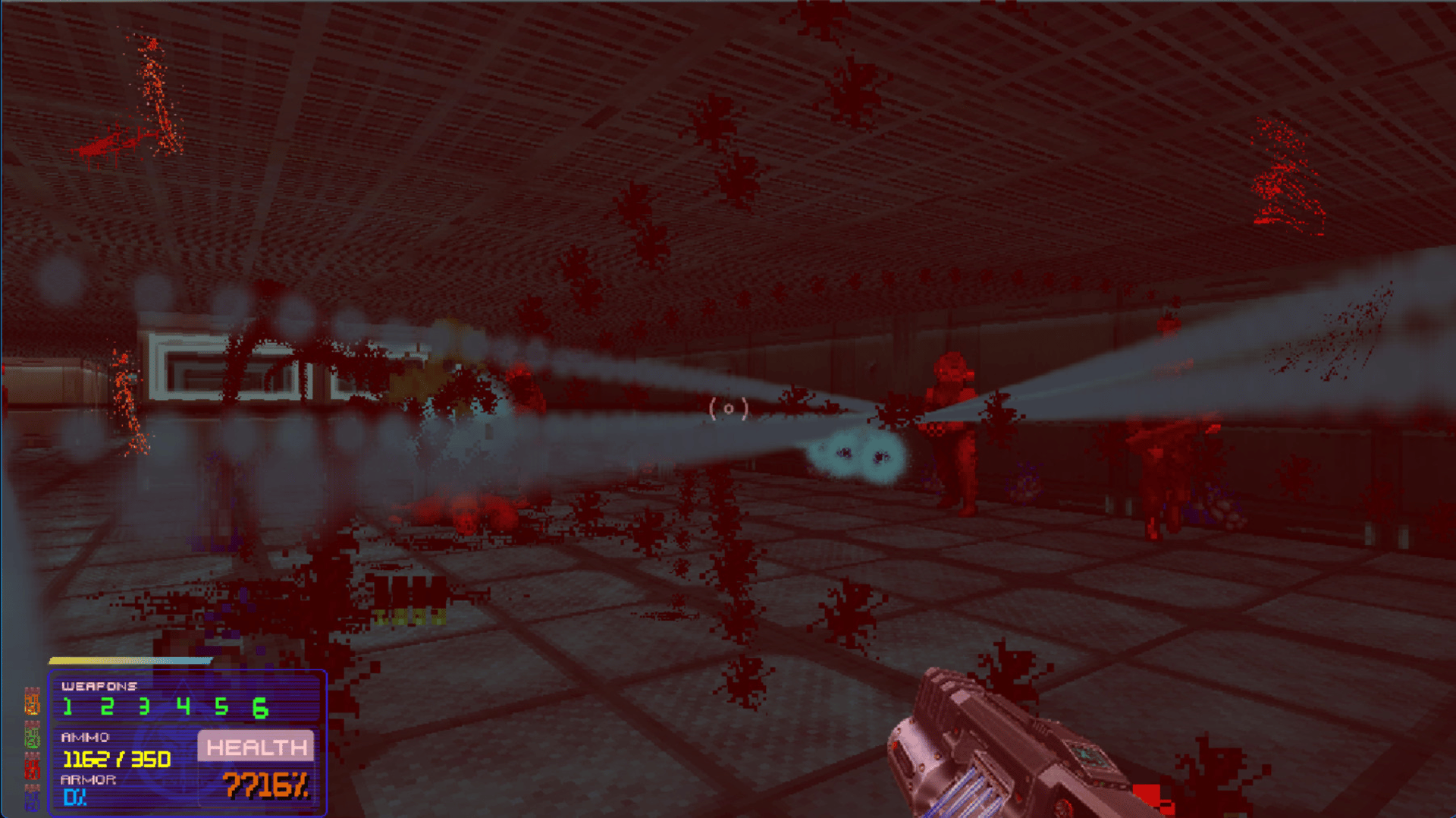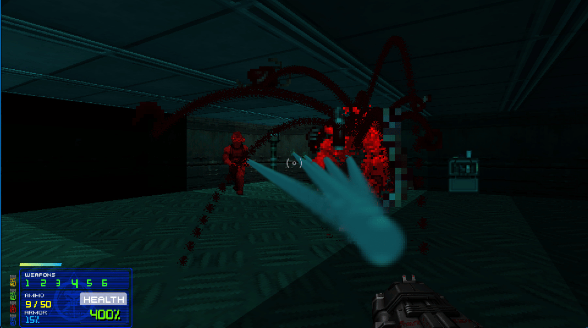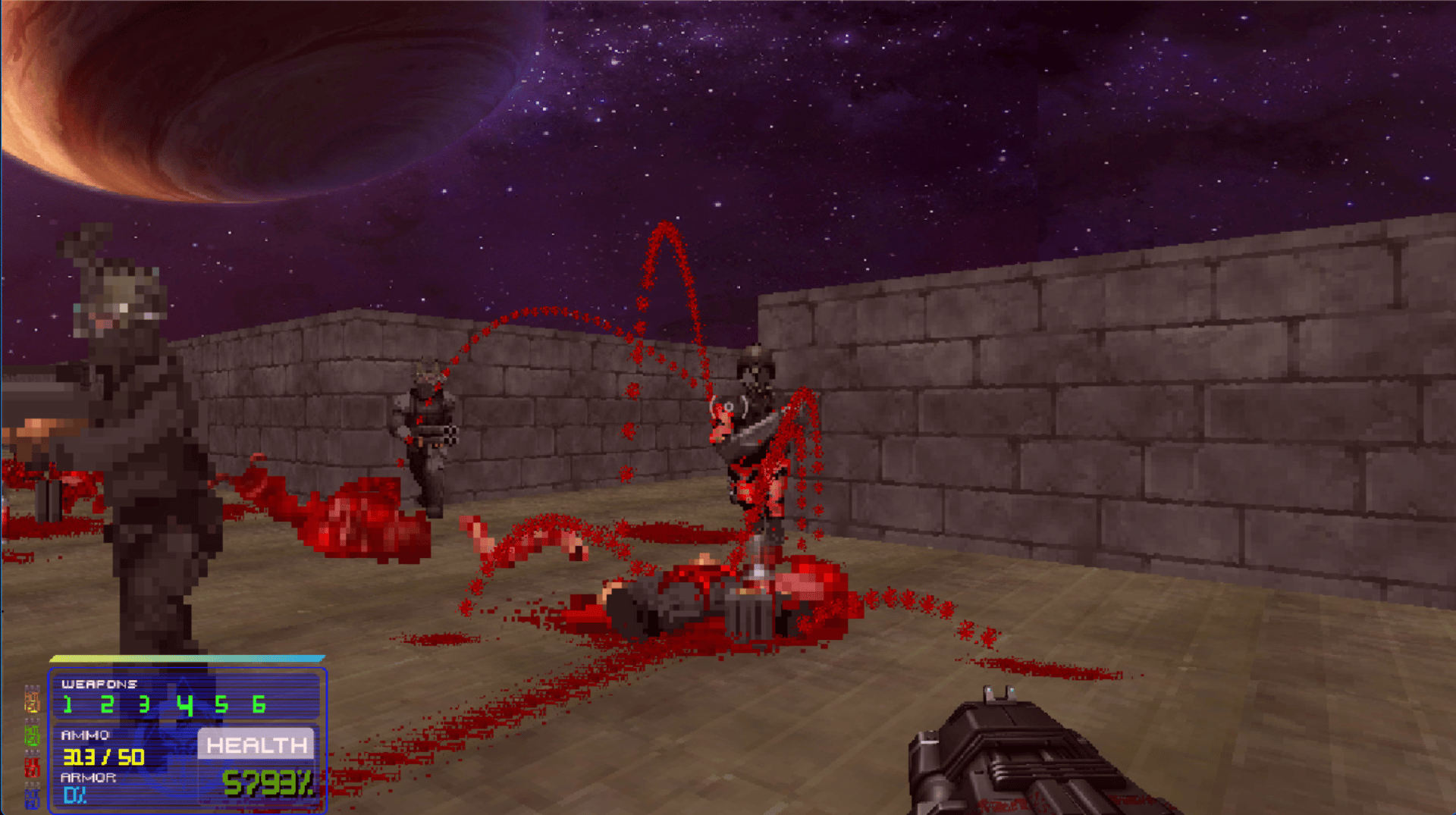 A retro 2.5D sci-fi FPS shooter with modern mechanics with custom engine. Features completely destructible environments, bullet-time slow motion, Newtonian physics, dynamic lighting and more fun features.