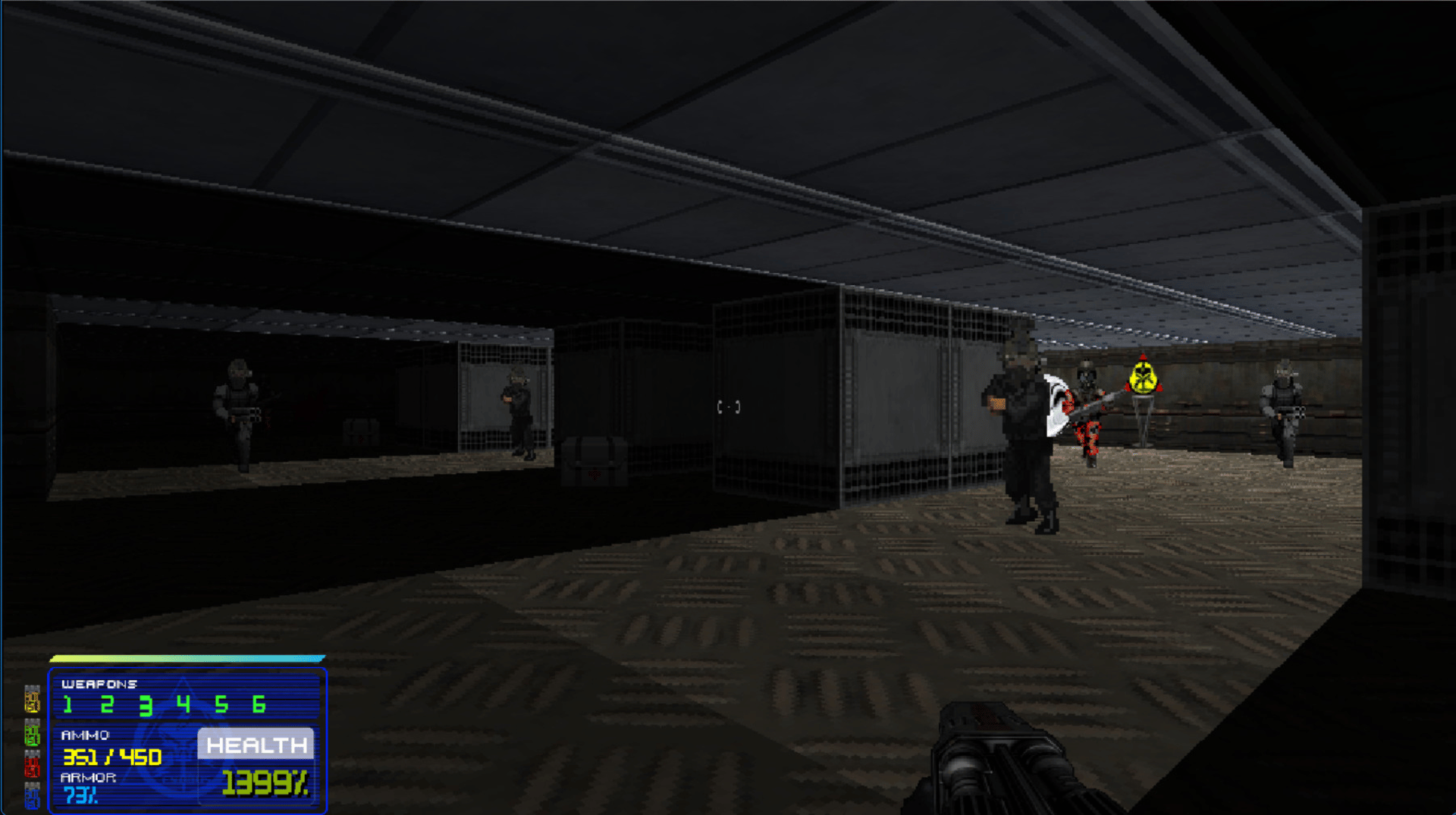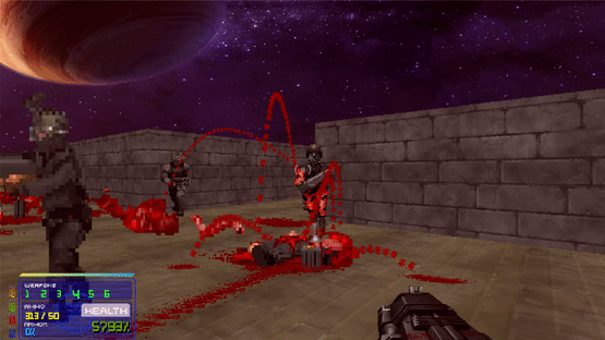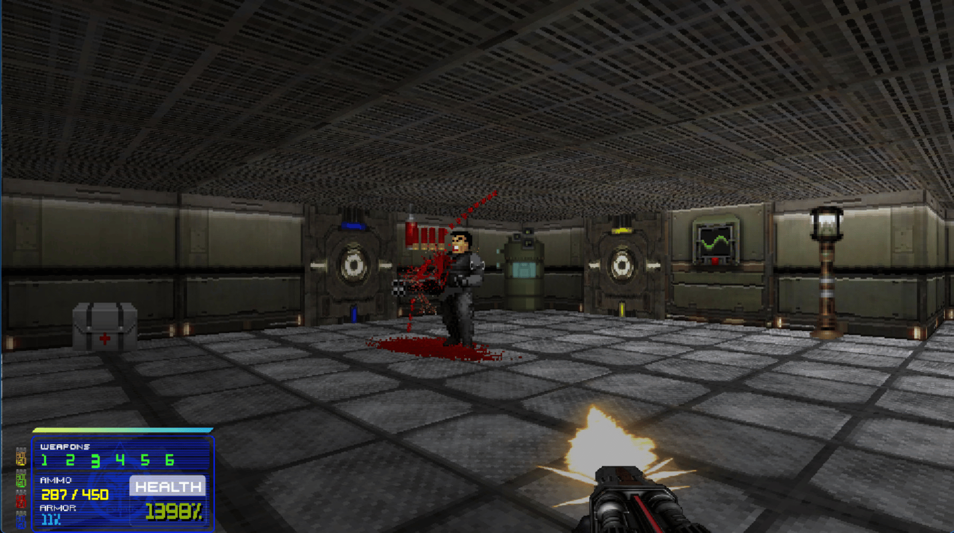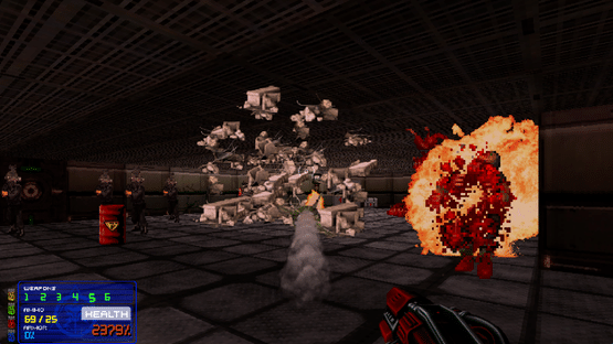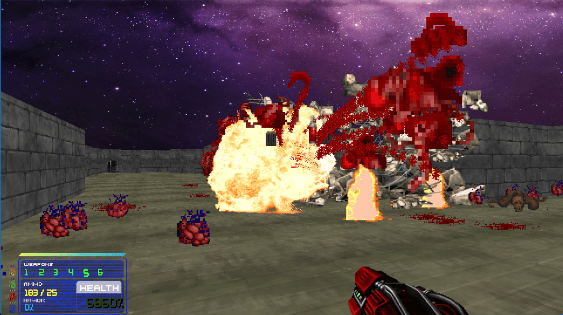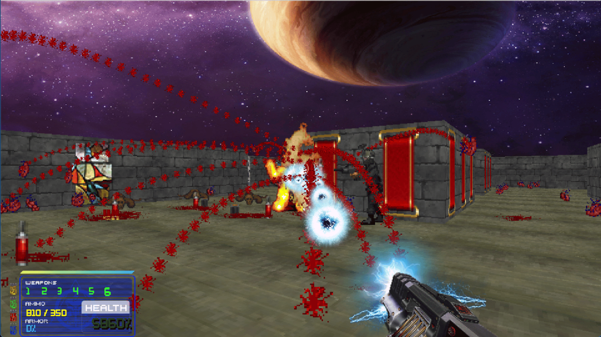 A retro 2.5D sci-fi FPS shooter with modern mechanics with custom engine. Features completely destructible environments, bullet-time slow motion, Newtonian physics, dynamic lighting and more fun features.