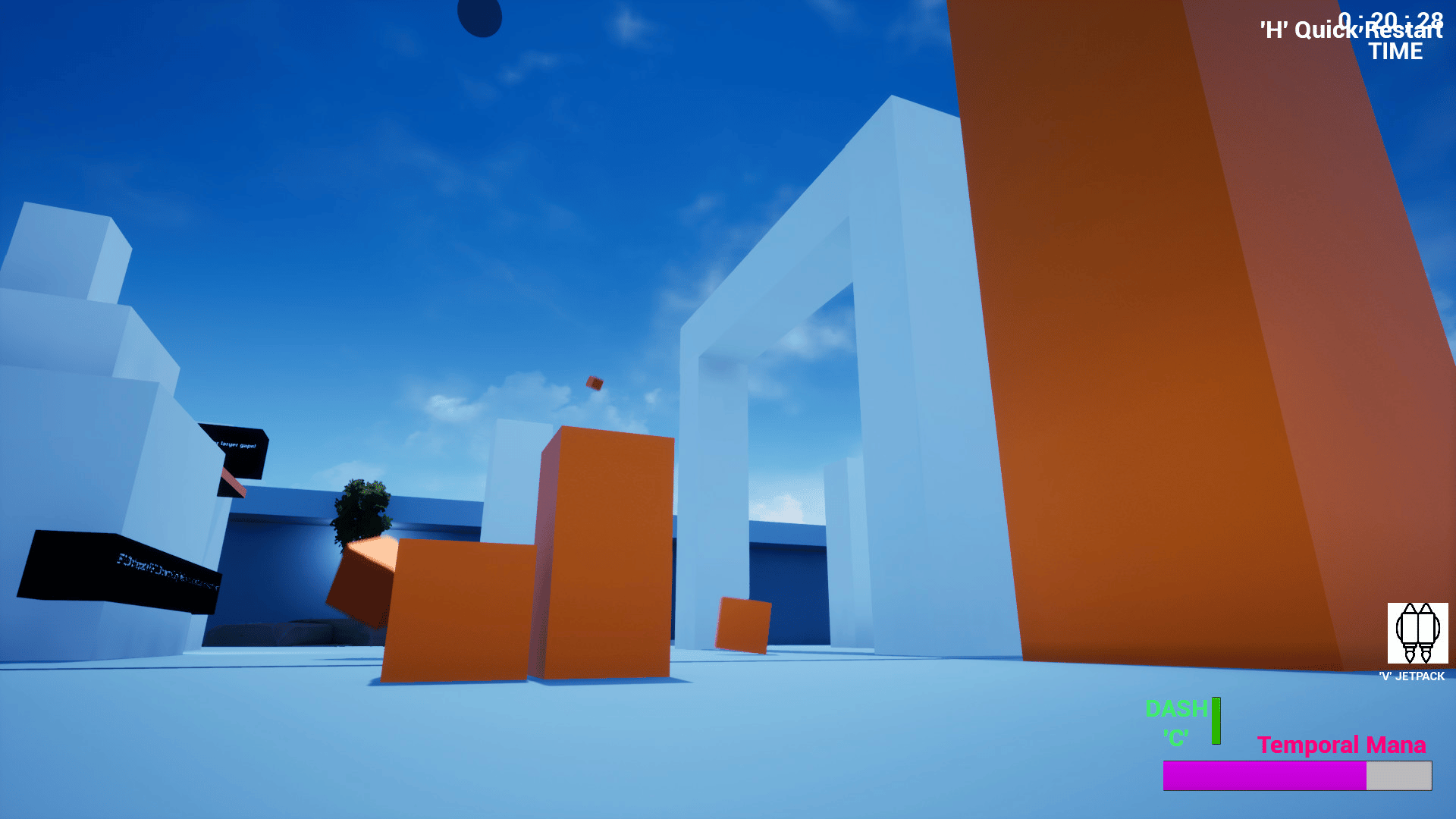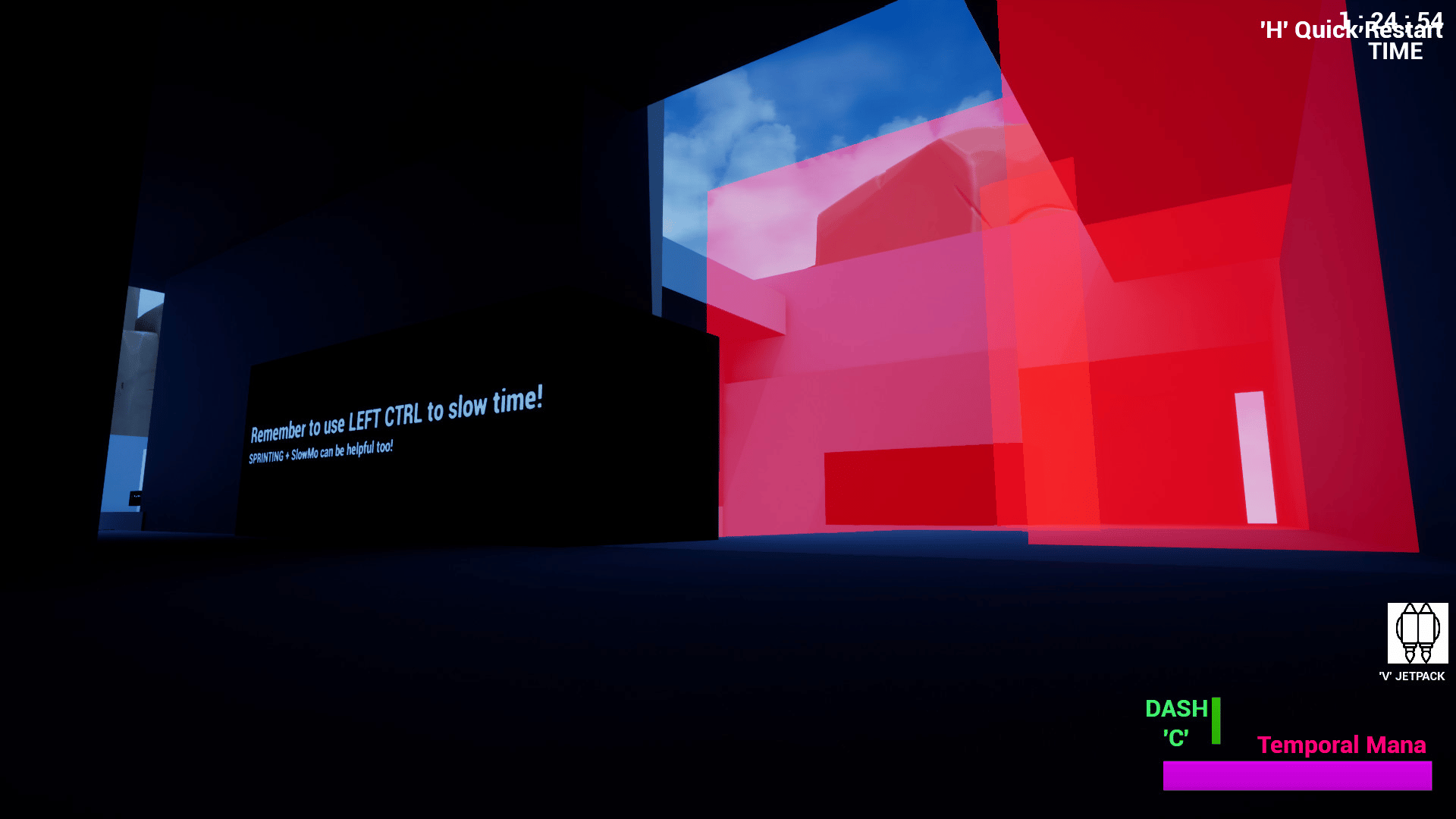 Temporal Sprint is a 3D platformer game focused on Speedrunning and Time manipulation (such as slow motion and rewinding.)