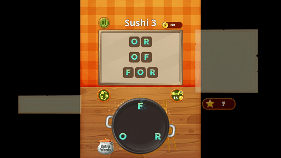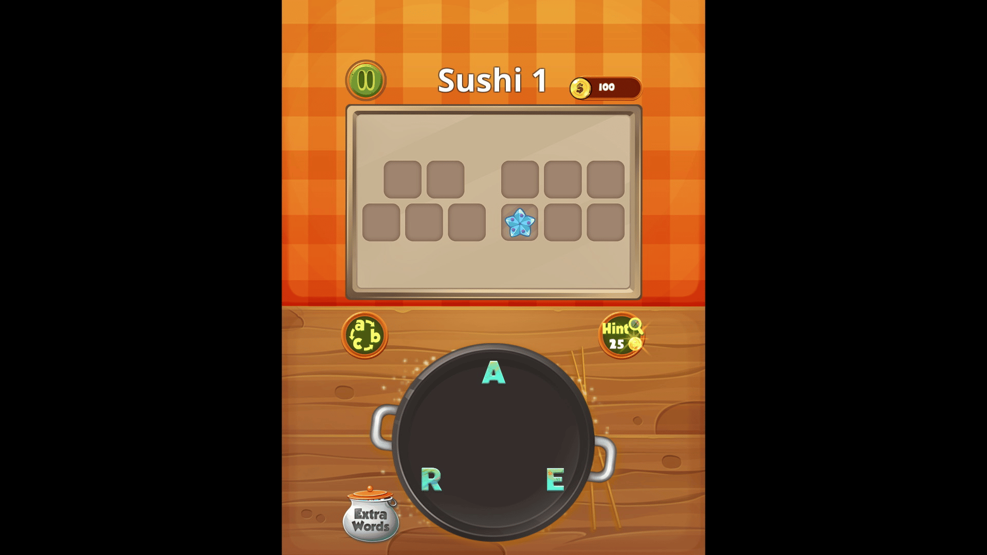 This is a word search game. Theme: kitchen. You are presented with several letters and your task is to add words from these letters.