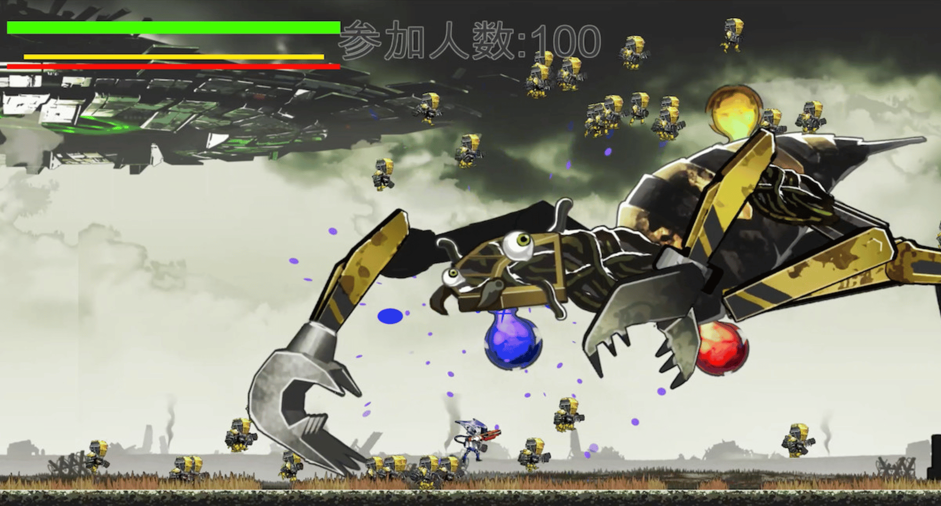 "Laugsh! " is a one-player game and a new feeling 2D action game where 100 friends can come to your world from play data collected from all over the world and advance the game to your advantage. Explore the stage with 100 friends, defeat the boss while cooperating, and have fun!