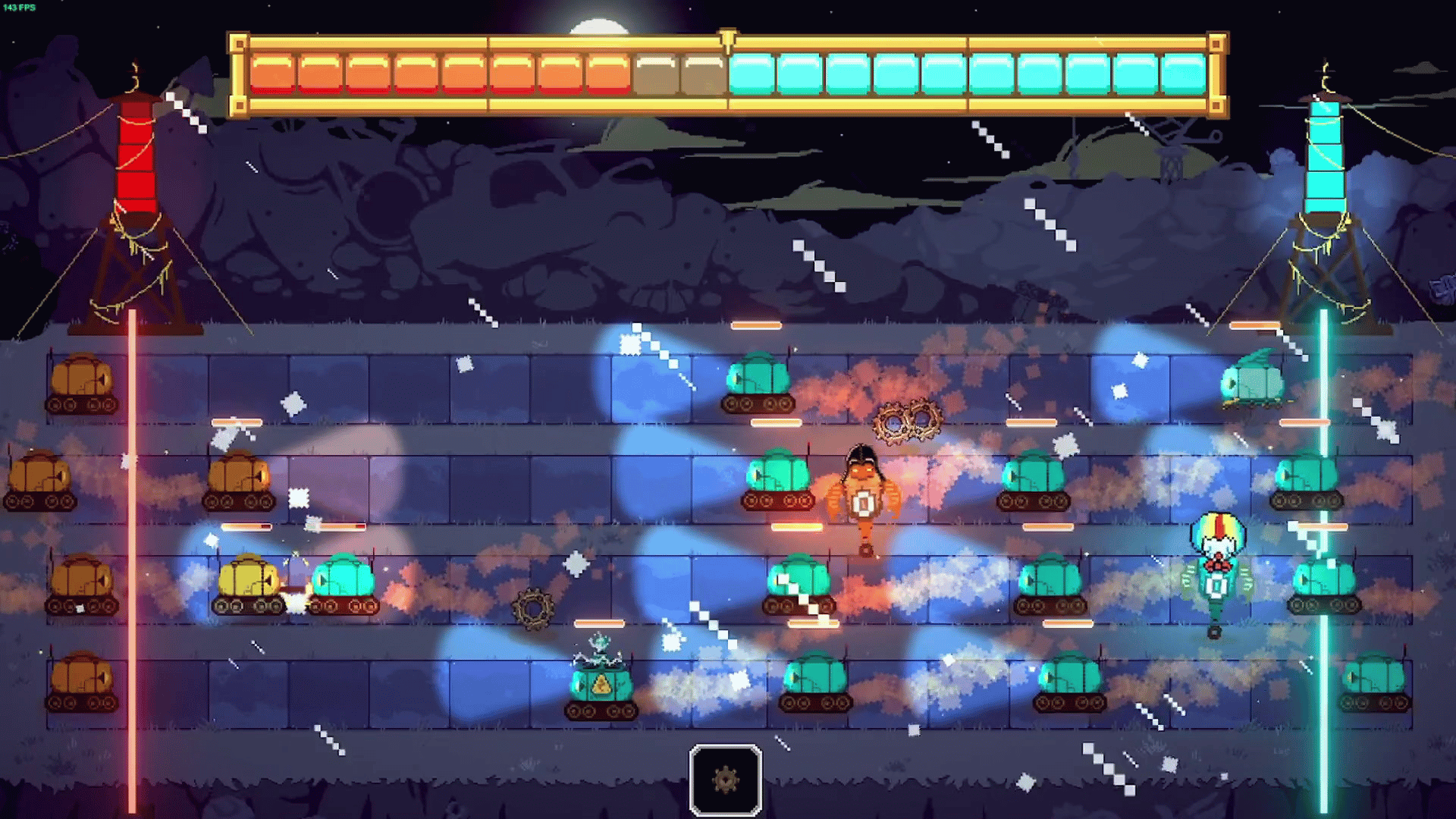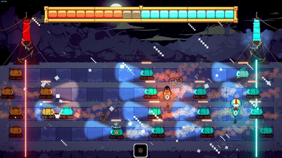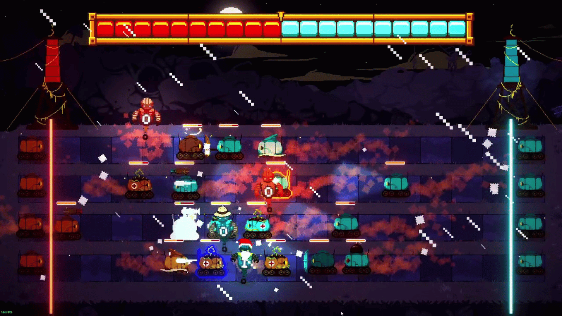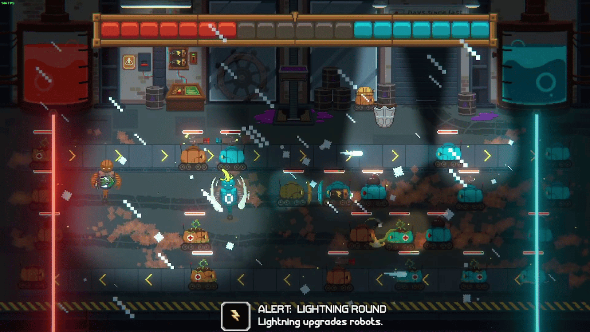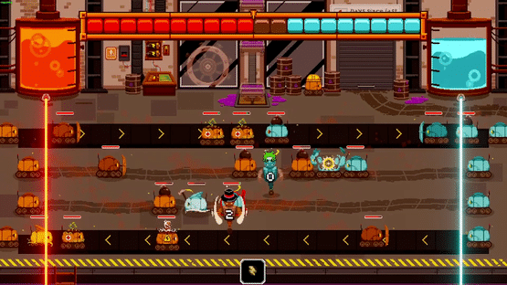 Grab some friends and duke it out in chaotic party mayhem for up to four players! Send enough bots hurtling into your opponent's nexus to win, but watch out for unpredictable weather hazards! Snap up precious upgrades to gain control of the arena, crush your enemies, and seize victory!