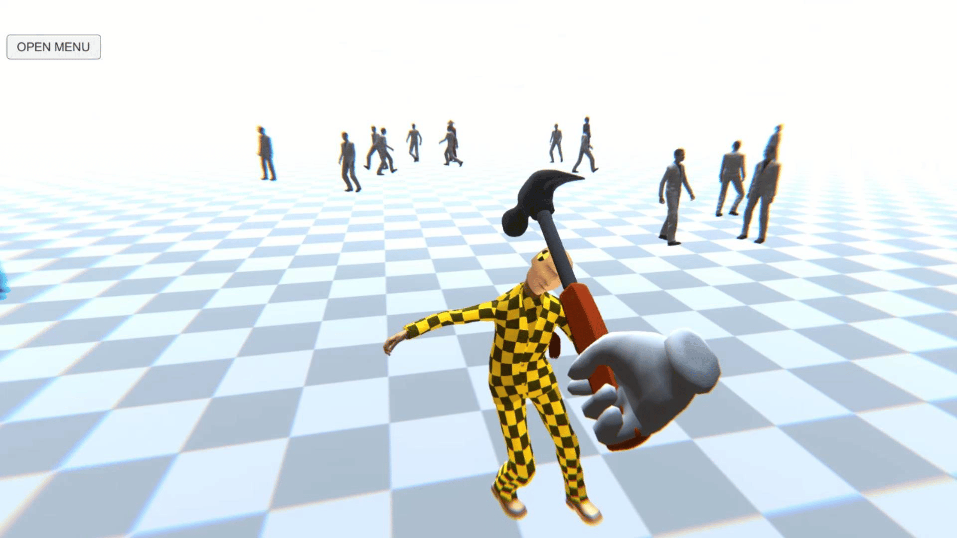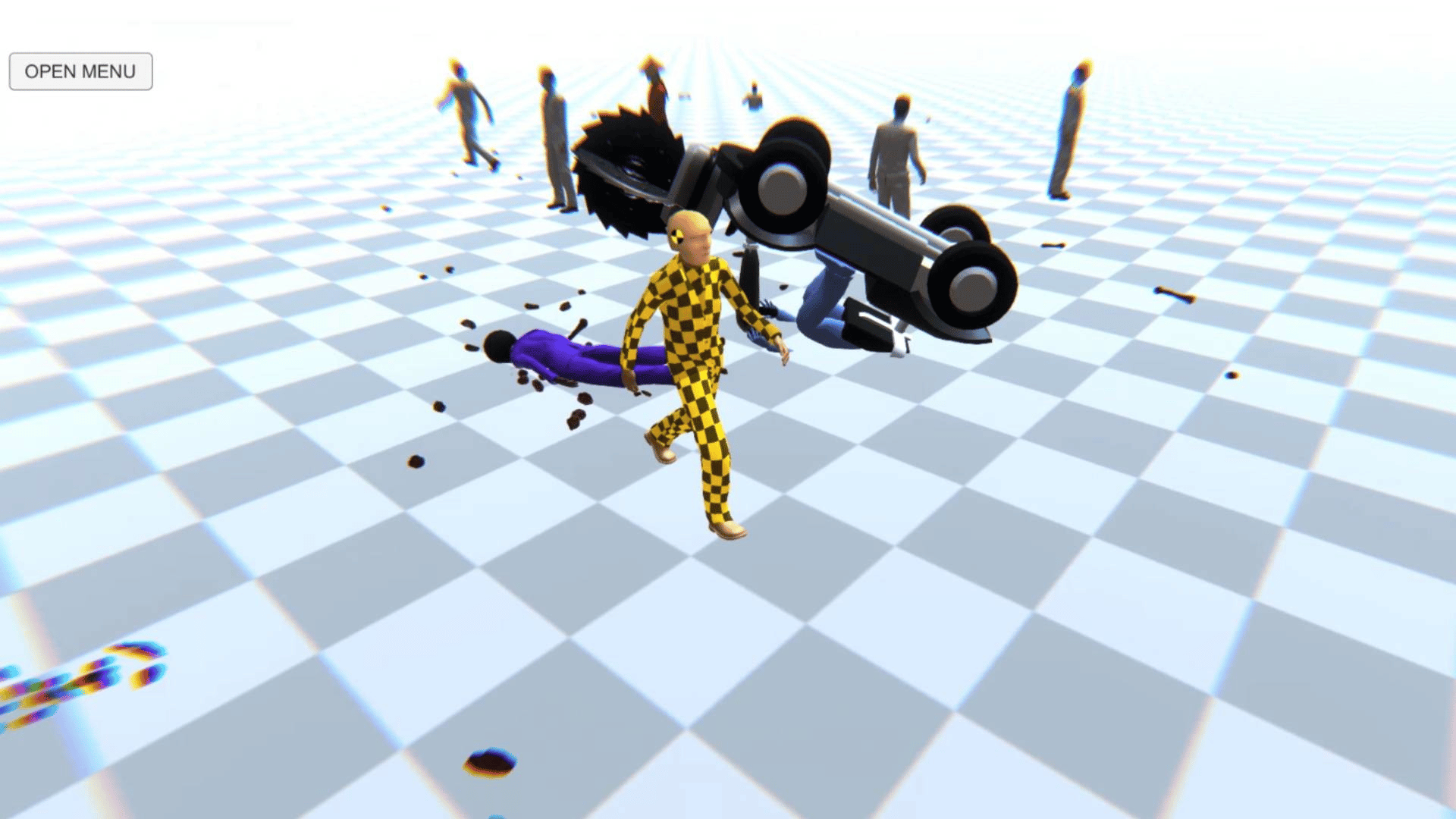Bone crunching, head exploding, limb tearing ragdoll dismemberment action in 3D.