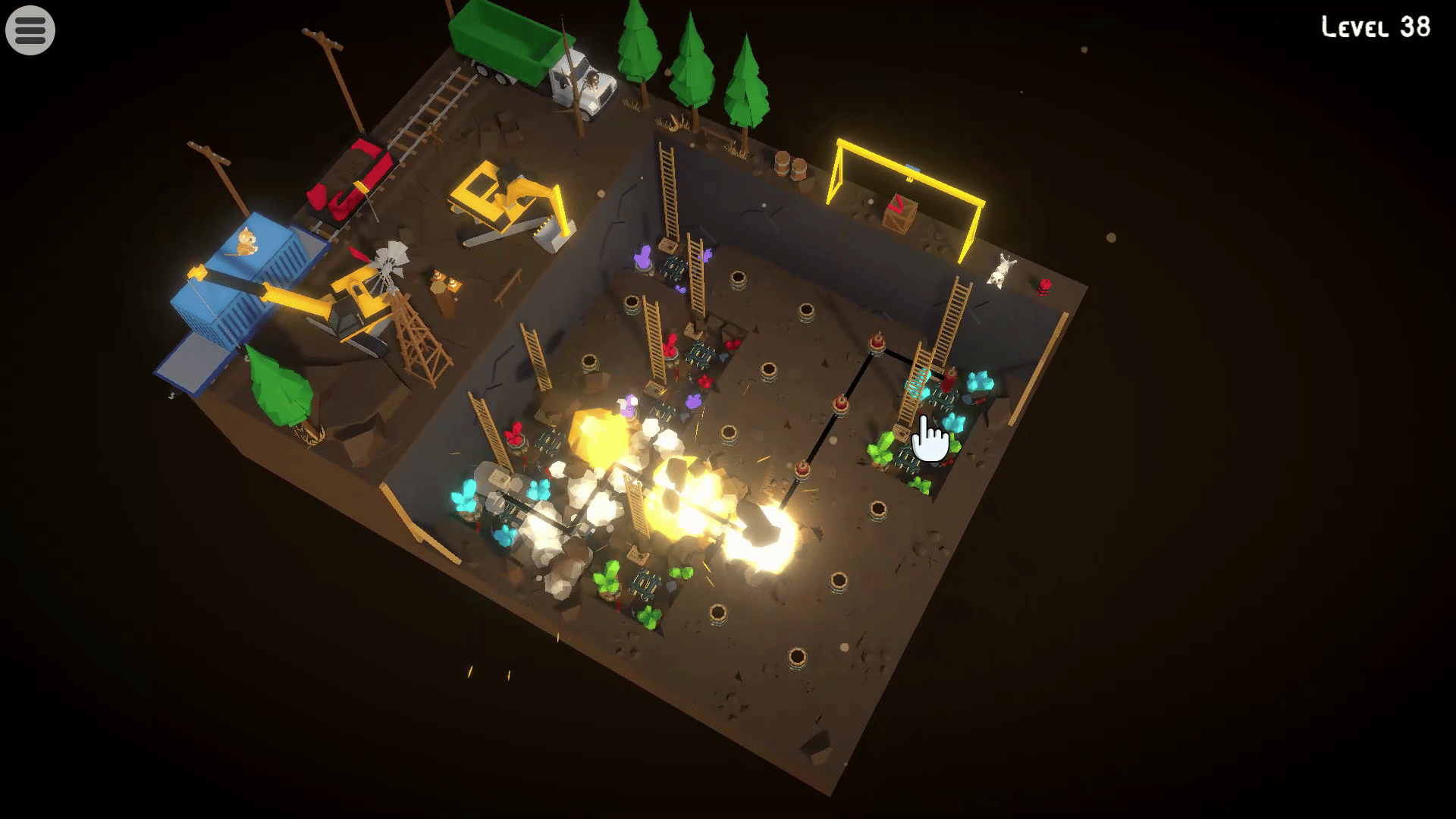 Mining Cats is a logic puzzle that involves blasting rocks and creating paths that connect mines of gemstones of the same color.