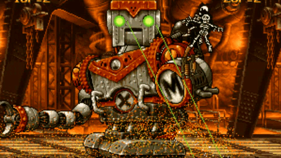 Metal Slug 3 is a run and gun video game for the Neo-Geo console/arcade platform created by SNK. It was released on the PlayStation 2 in Japan and Europe and on the Xbox in North America. Both of these ports feature two extra mini-scenarios once you complete it. “Storming the UFO Mothership” sets the stage in the final level puts you in control of one of three enemy soldiers – a “Normal” guy, a “Bazooka” guy, and a “Shield” guy. As you plow forward, a whole army of Morden’s soldiers will tag along and start killing enemies along with you. You can also call Sgt. Allen O’Neill to help clear the screen. “Fat Island” is a two player game where each compete to eat as much food as possible.