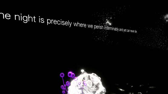 GLUT (a superabundance of nothing), by Johanna Hedva, is an inquiry into the knowings and unknowings of embodiment. It is a sound work composed with divination and AI, which manifests as both an immersive physical installation and videogame. The core of GLUT is a sound composition made entirely of Hedva’s voice, ranging from its rawest expression of screams, to two AI vocal clones that, in order to trick the surveillance tactics embedded in AI, have been manipulated to sound ever more de-human. Disturbed that proprietary vocal-clone software services reserve the right to sell client voice data to governments and corporations, Hedva worked with artist, musician, technologist, and writer Jessika Khazrik to deceive the software, training it with Hedva’s voice disguised through multiple vocoding processes. Hedva and Khazrik created two vocal clones: Arid and Mud, neither of which are made from an actual human voice and therefore not actual vocal clones. In GLUT, these two AI voices speak a text corpus that Hedva built over four lunar cycles, and synthesized through various divination techniques. The corpus is composed of the writings of medieval mystics (mostly of the apophatic tradition); theoretical physicists, mathematicians, and philosophers writing about black holes, dark matter, night, and nothingness; poets and novelists on sleep, music, and the voice; and the algorithm of amazon.com. In the game, users are a teratoma avatar that drags itself through an environment cheating at non-Euclidean geometry through a series of nesting black holes, intestinal tunnels, glittering caves, and oceans of black water. It is a digital experience that mirrors the physical installation (shown at the HKW Berlin) while producing a world that disorients as much as it confirms what knowledges are available to the body.