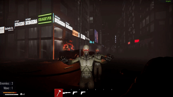 Wandering Meatbags is a zombie FPS shooter. Zombies are rushing at you in a big city, you have to walk around to find loot boxes, keep the best weapons and watch your ammo. If you're lucky, you'll get a rifle, a shotgun or even a revolver, but if you don't, you'll have to deal with them with an axe or a knife. And don't underestimate the little flare gun, it's pretty... explosive ! You will find walking zombies and running zombies that are dismemberable. Every 5 waves you will have a deposit of breakable crates around the city, which includes weapons, ammo and health. You need to find them before more zombies come running at you and before you run out of ammo.