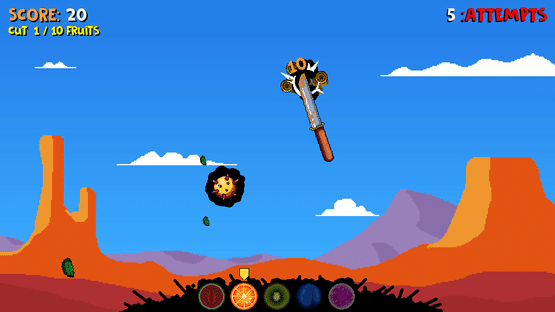 Fruit Legacy - A click-and-click game where the player, by choosing a certain color of the knife, must cut falling fruit and accumulate bonuses that allow the player to progress through the level. Fruits have the ability to mutate into new variations, where they are combined into several pieces.