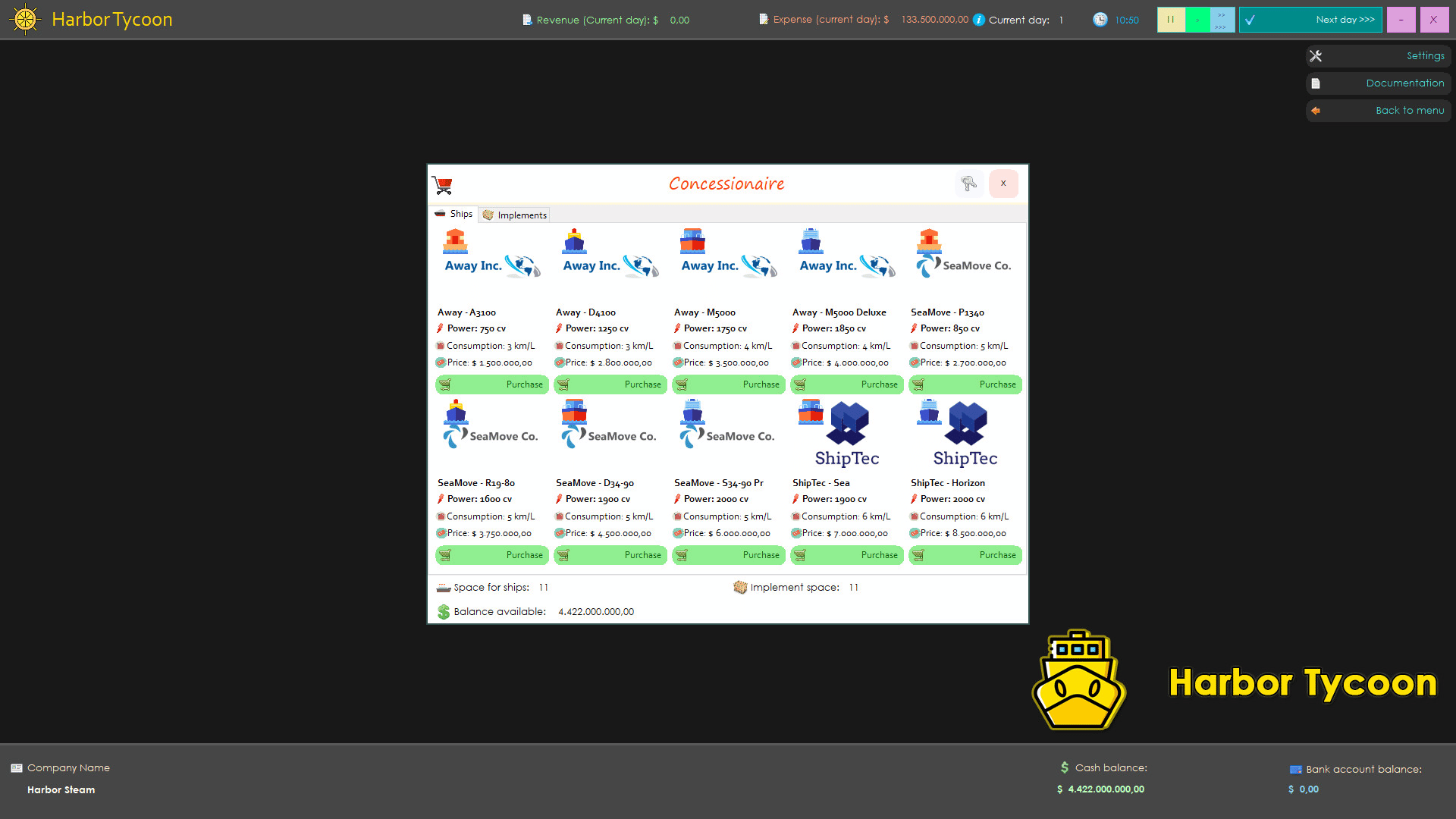 Manage your own shipping company! Be a maritime business owner, with control over everything in your business. Work, earn, grow and become a shipping magnate!