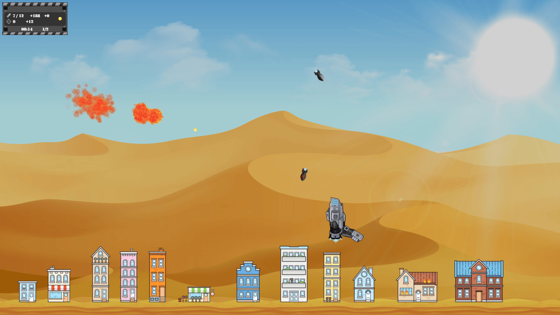 This is an intense combat game inspired by the classics of the 80s, mixing defense of towers and ships with 2D arcade. Defend the cities of a primitive planet from attacks by space pirates using a mobile artillery cannon.