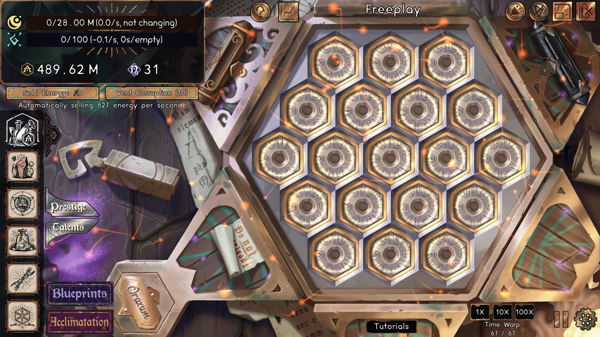 Oraxum Trials is an incremental/idle game where you conduct experiments with the Oraxum, a hexagonal board with magical properties. Harvest souls and use mystical crystals to create wild concoctions. Take on the mantle of soul alchemist and forge your fate, choosing between light and dark forces.