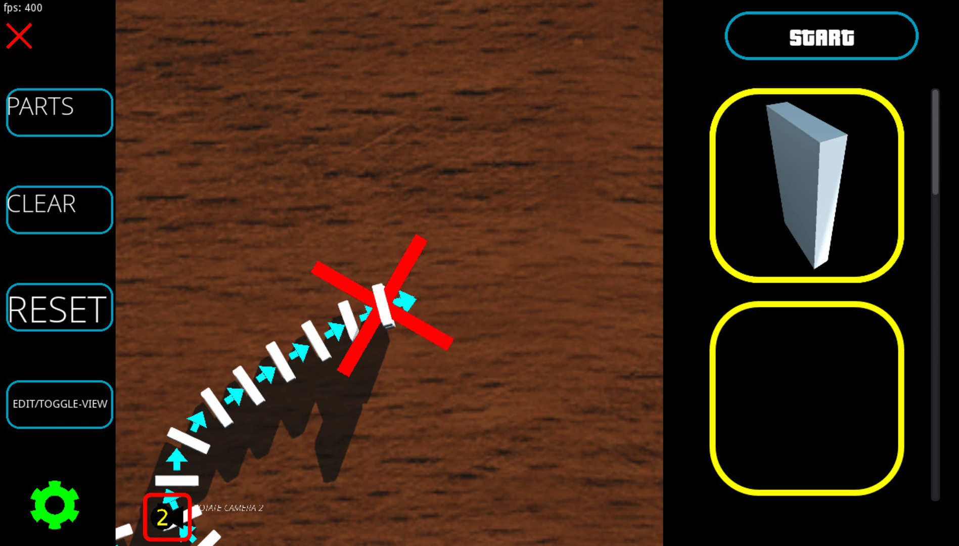 3D simulator for dominoes fun! Place the dominoes on the board and hit play to watch them fall. Reset, save, or load games up to 8 slots available to show friends and family your domino designs and simulation!